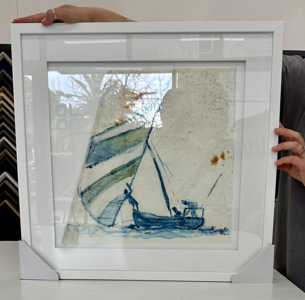 60 x 58cm. Acrylic on sail fabric, Framed in timber