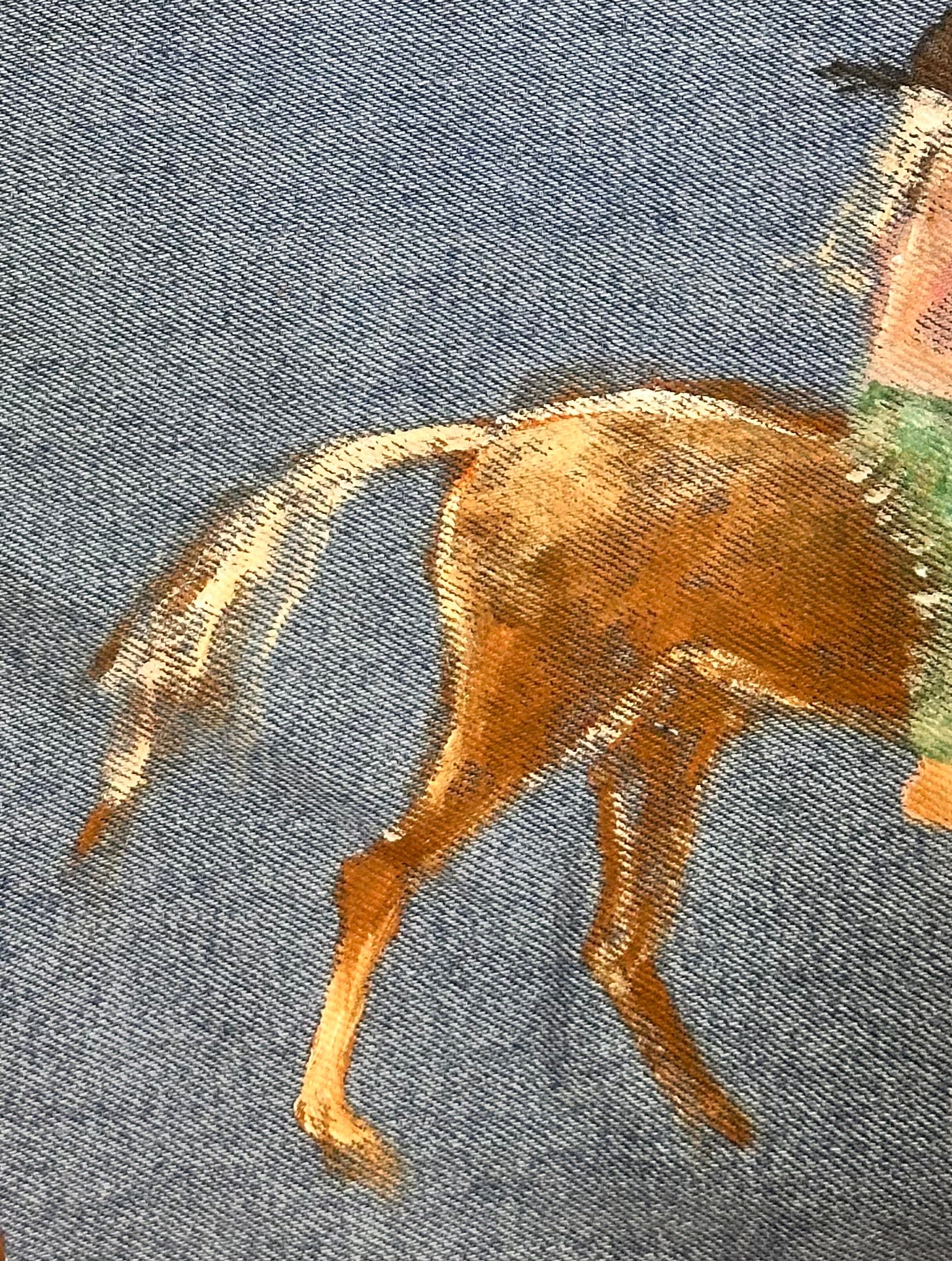 19 x 24cm | Acrylic on denim jeans | Framed in walnut stained timber under glass | Ready to hang