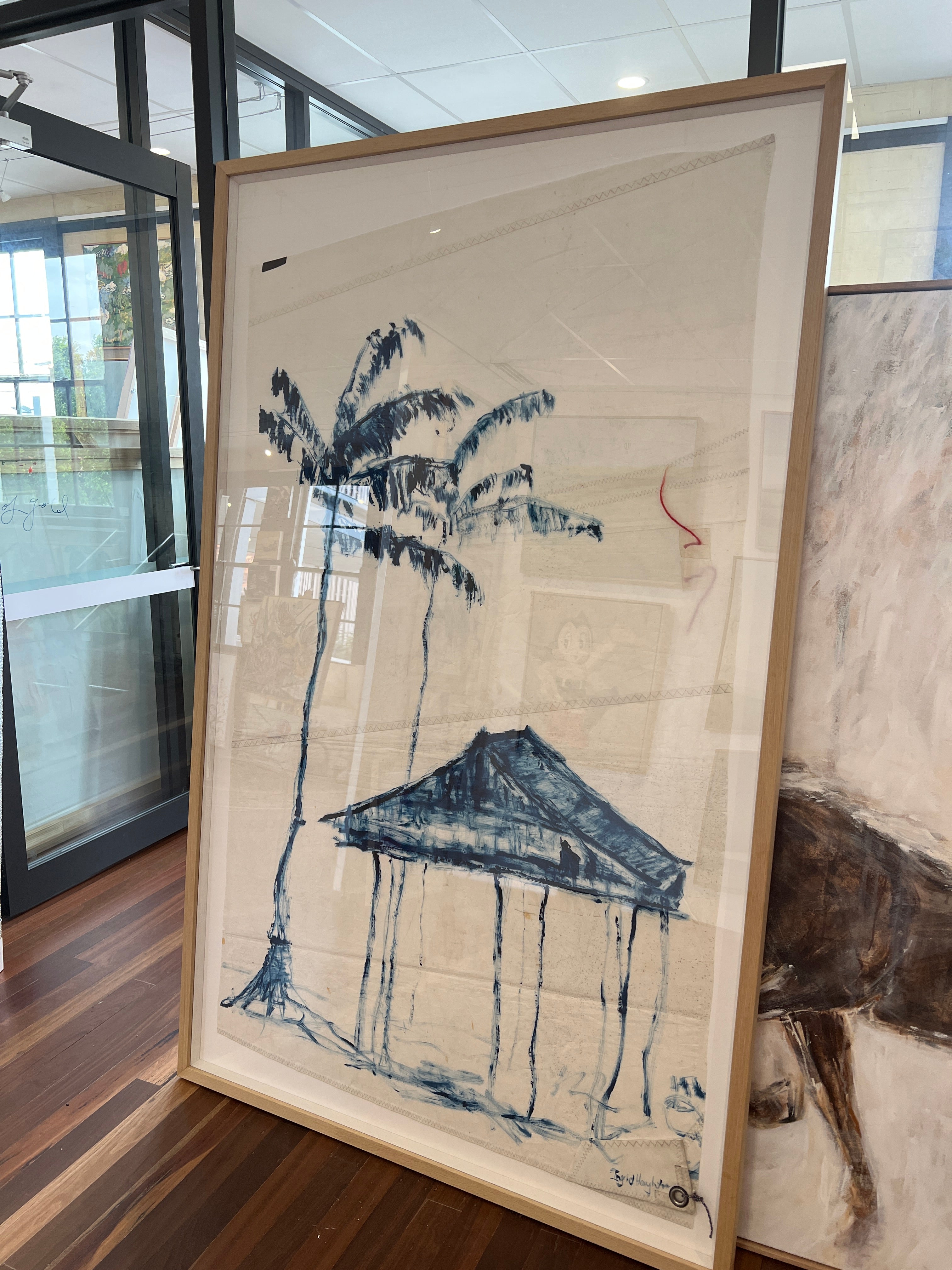 120 x 200cm Acrylic on sail fabric, oak frame.