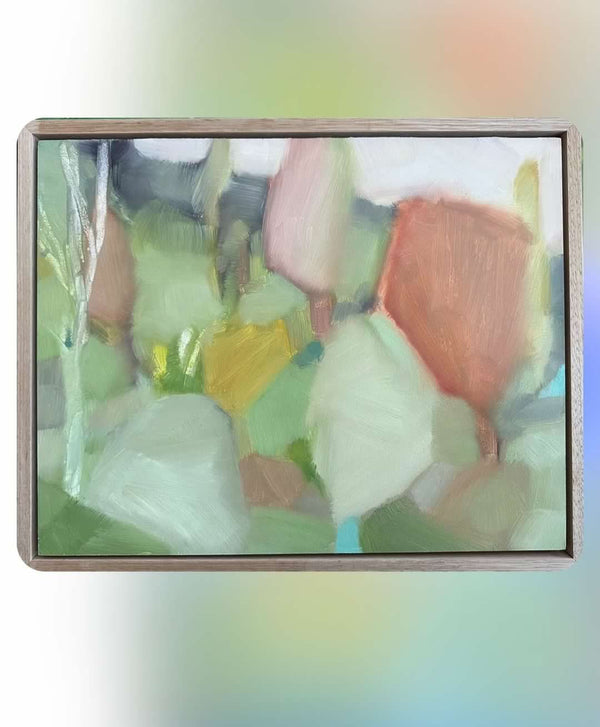 28 x 35.5cm. Acrylic on canvas, framed in Oak timber