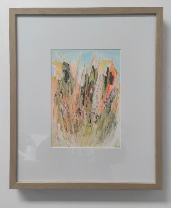 44 x 53cm. Mixed medium, Acrylic, oil stick pencil. Framed under glass. 20mm oak frame.