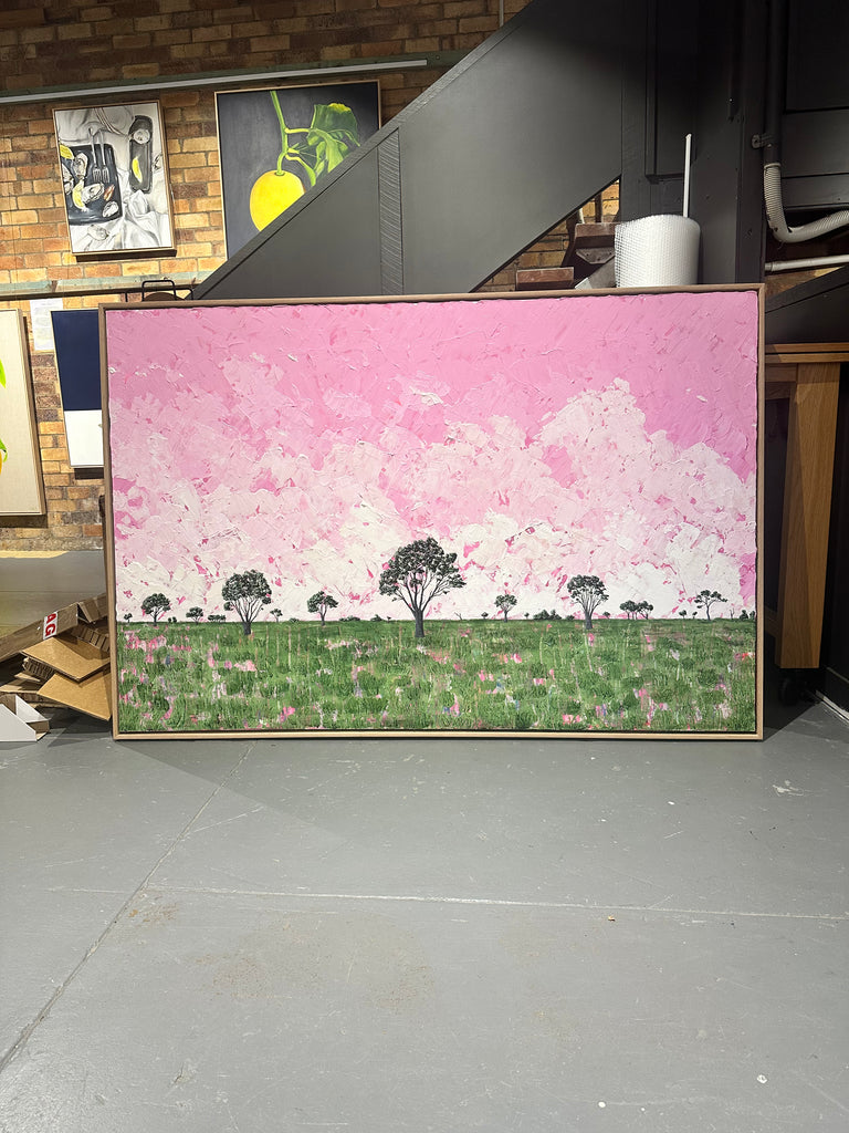 156 x 105cm. Acrylic on canvas, professionally framed in oak float frame.