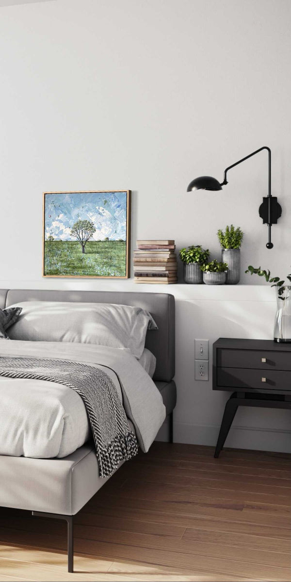 40 x 40cm. Acrylic on cotton canvas, professionally framed in oak.