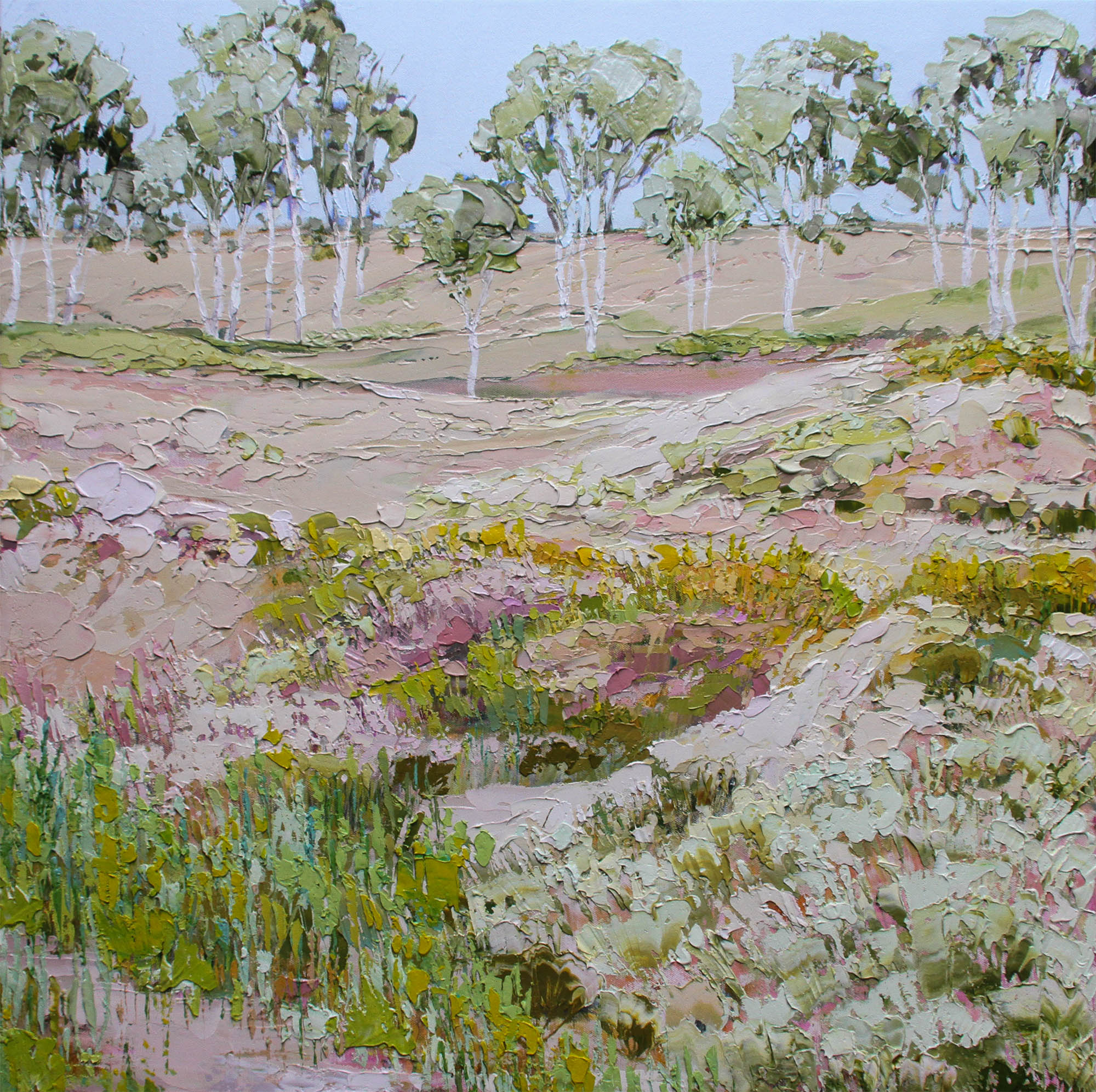 63 x 63cm. Oil on canvas, framed in raw Australian Oak.