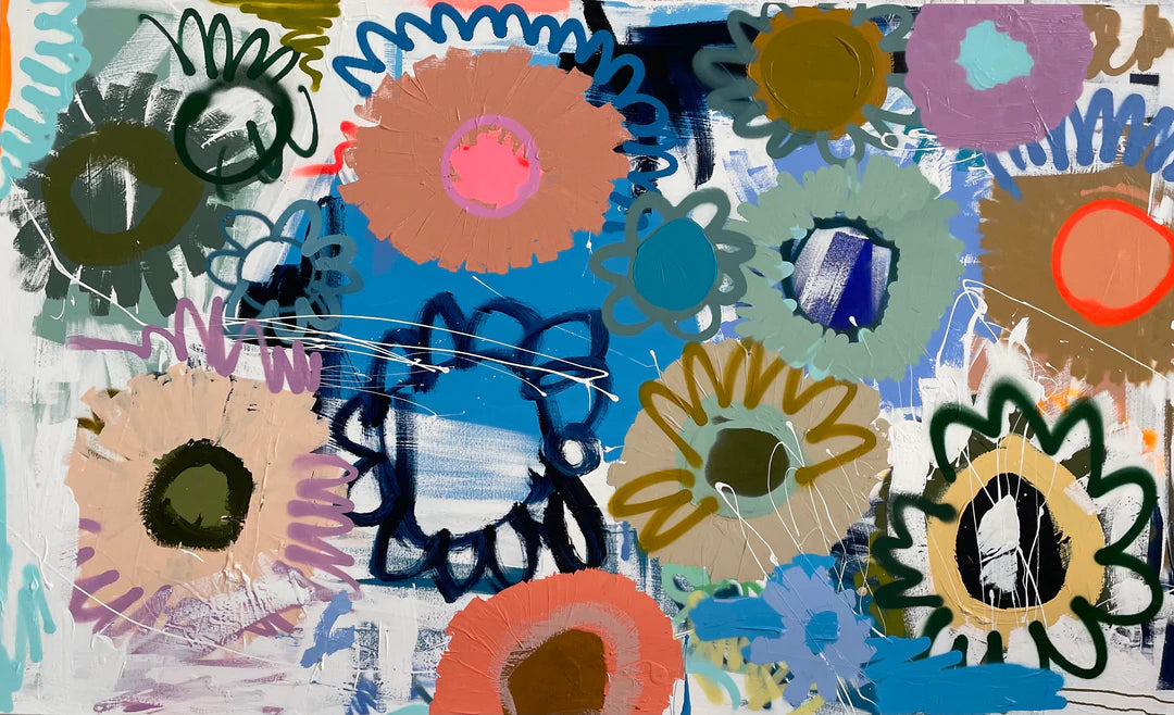 Acrylic paint and spray paint (framed in Tasmanian oak) - 122x198cm