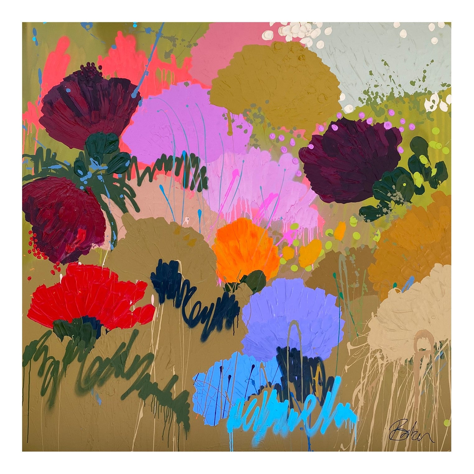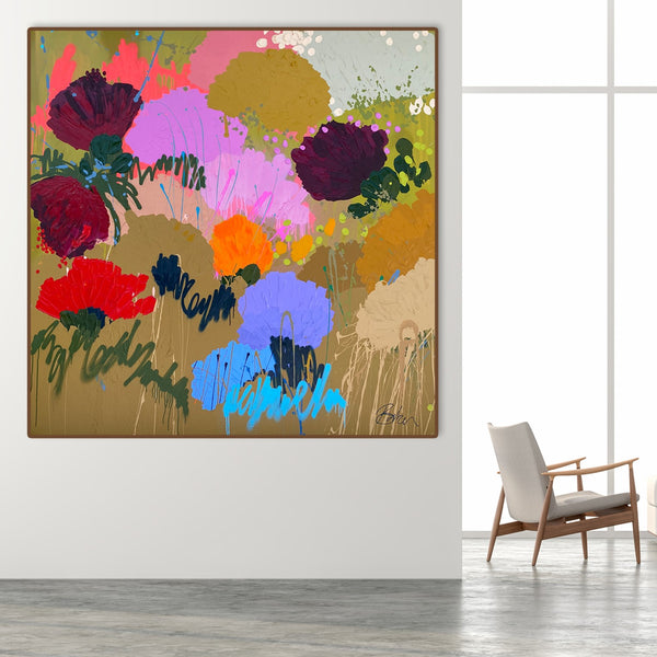 180 x 180cm. Acrylic on Belgium linen, framed in Tasmanian Oak.