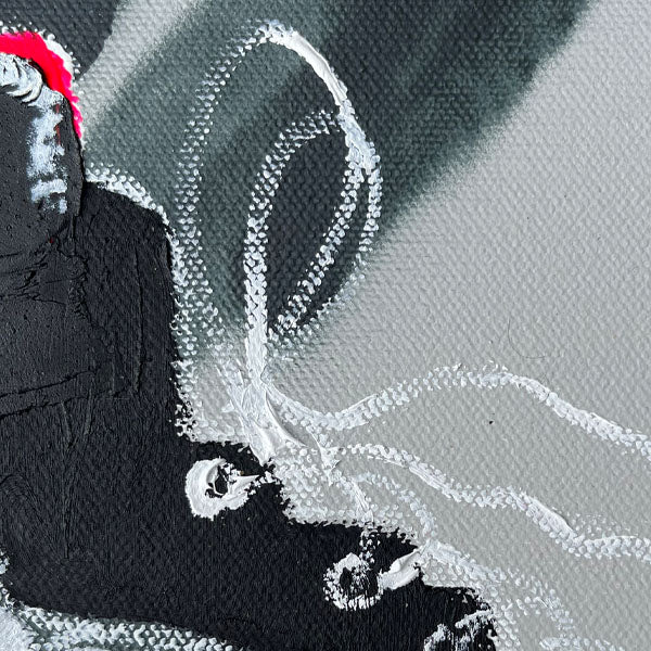 54 x 54 cm. Acrylics and oils on cotton canvas, framed in woodgrain black.
