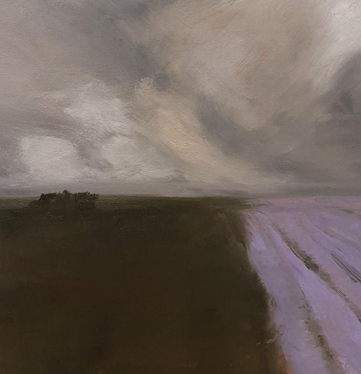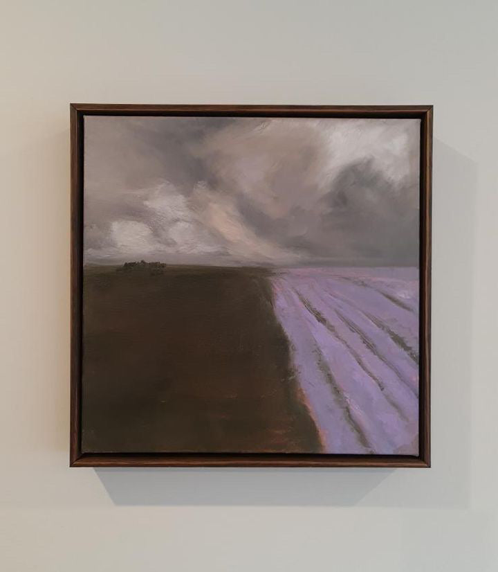 43 x 43cm, Oil on thick edge cotton canvas. Framed in stained oak.