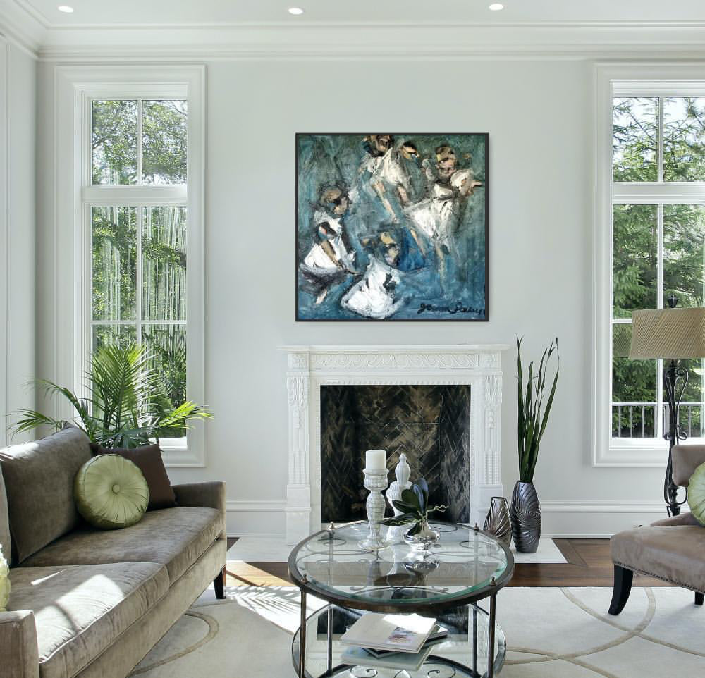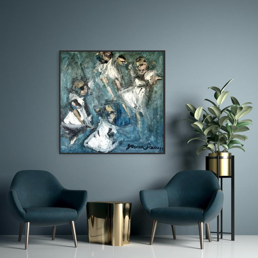 125 x 125 cm oil on canvas, framed in black timber box frame