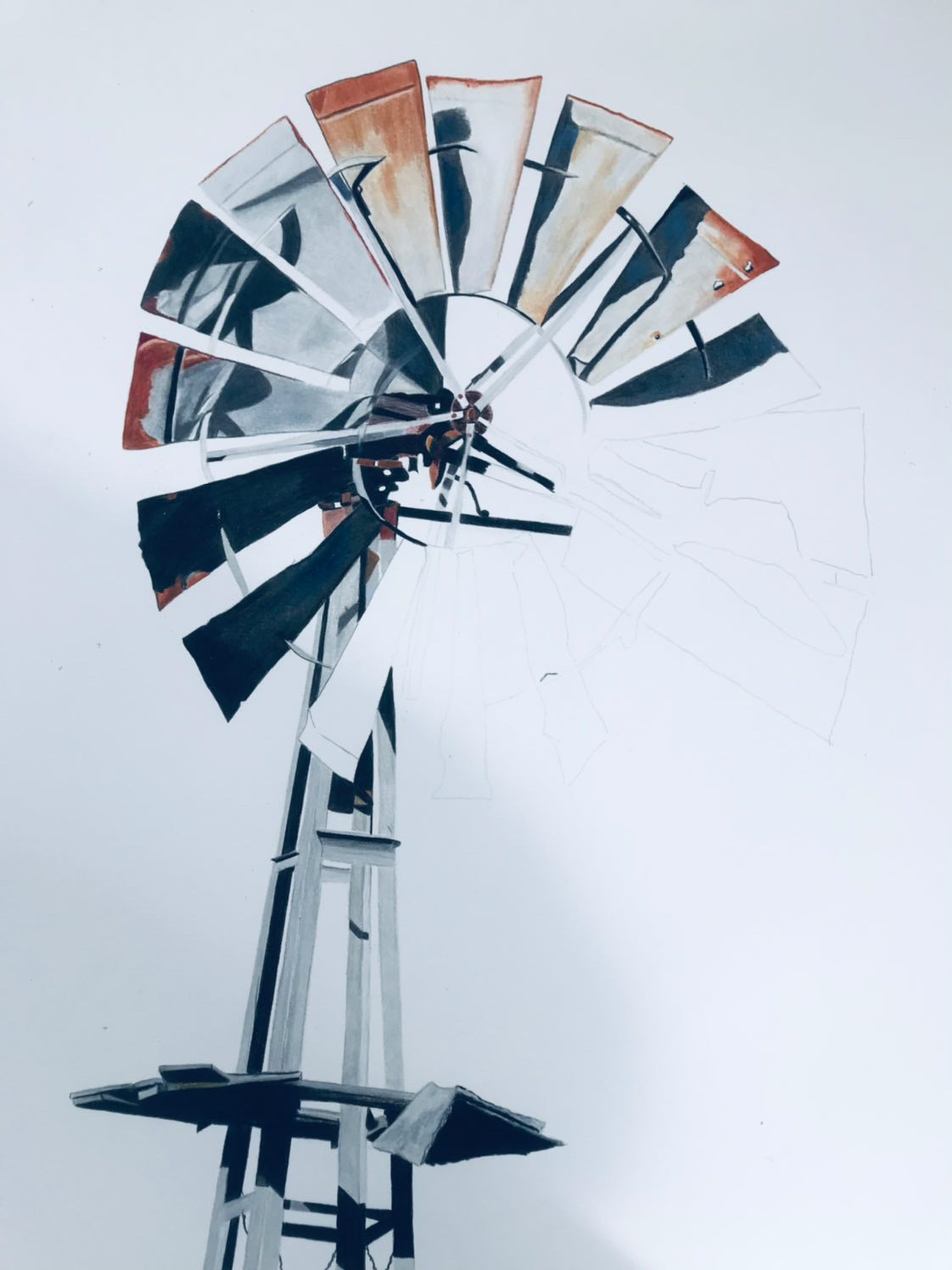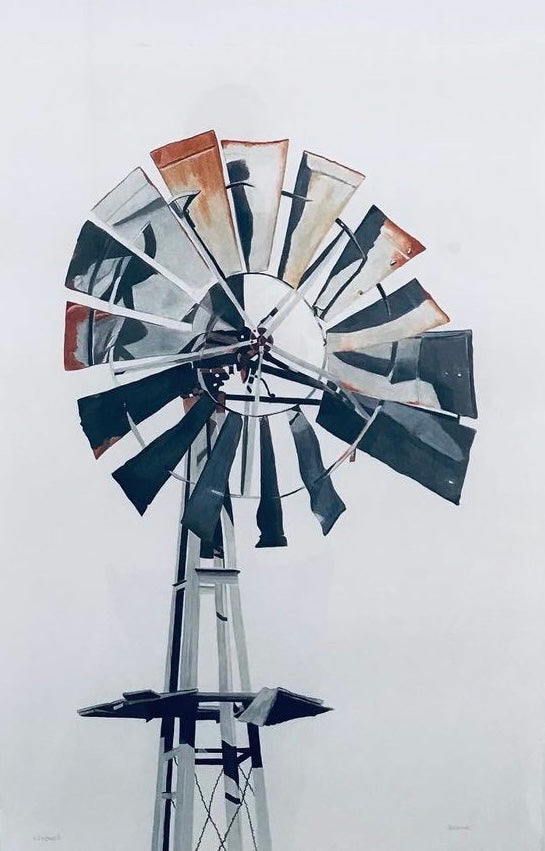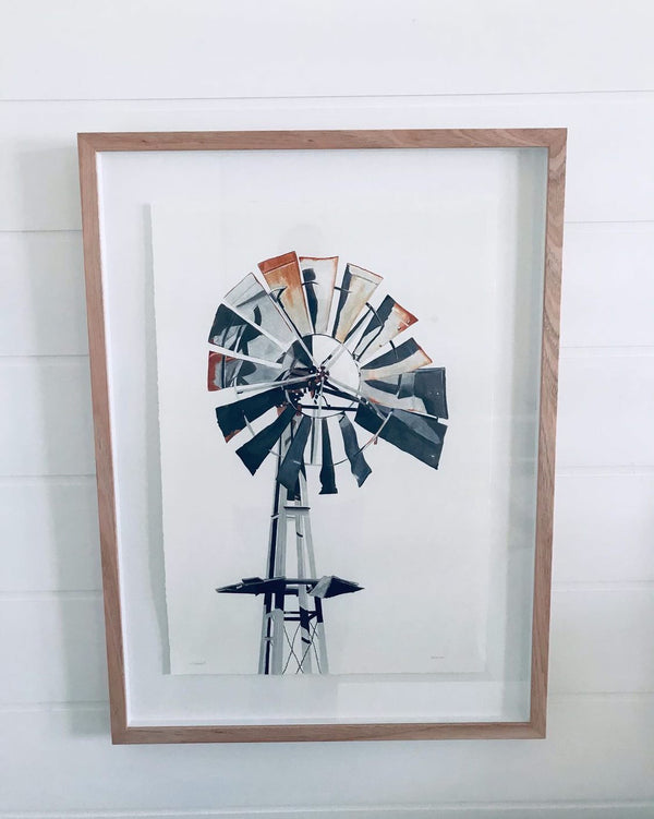 74 x 55cm. Pencil with spirit wash, floating in timber frame.