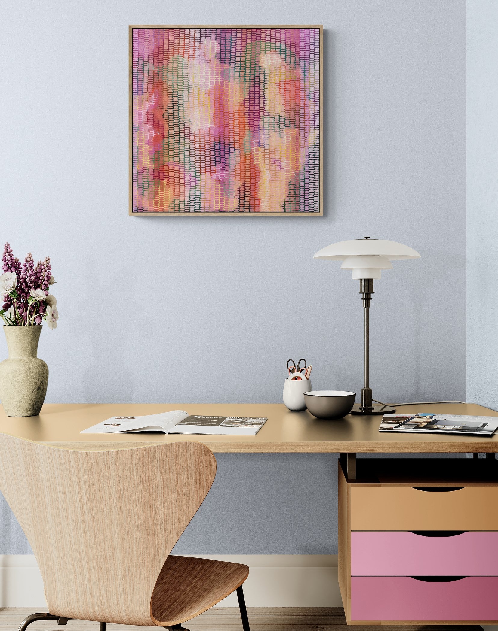 63 x 63cm. Acrylic on canvas, framed in Oak.