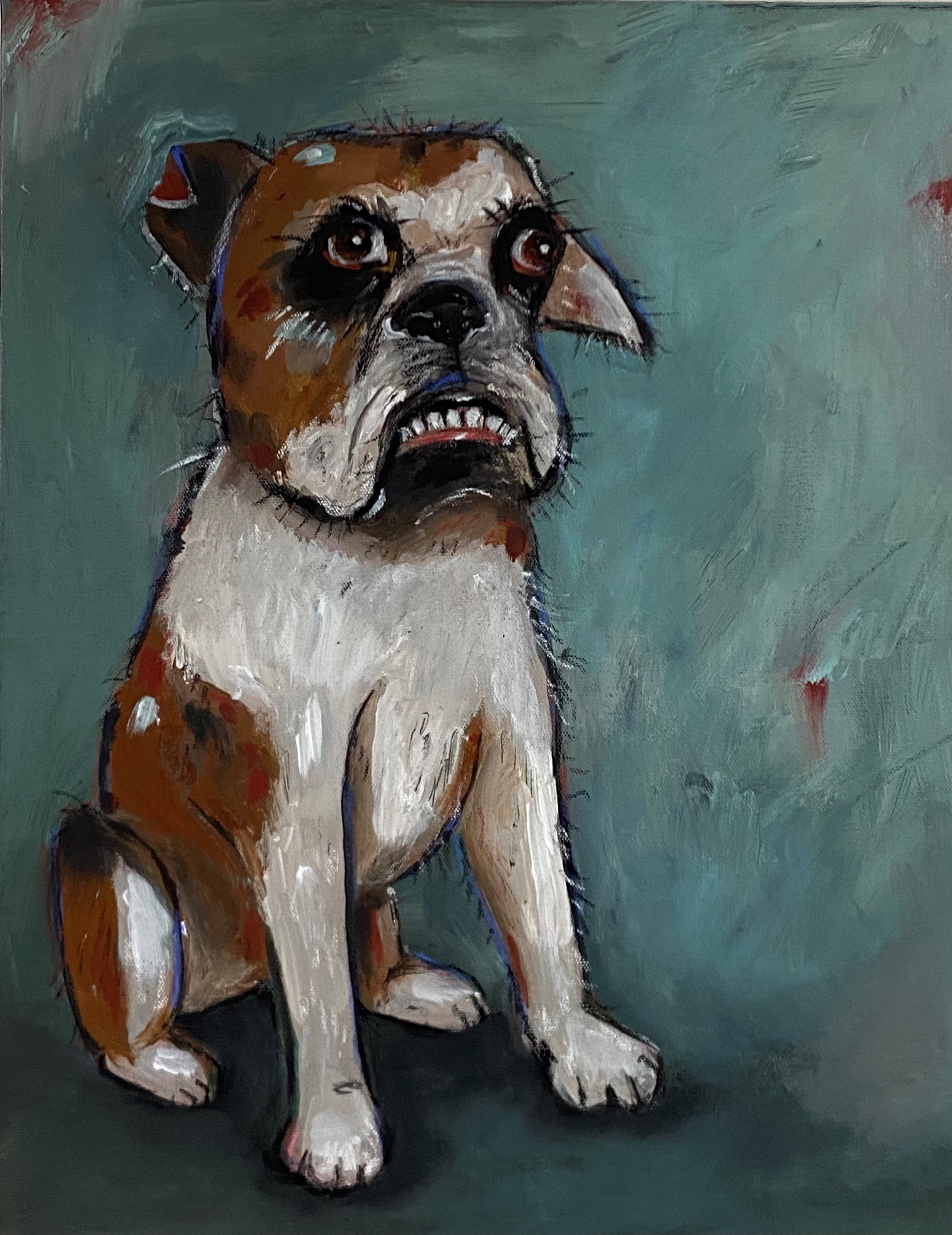 43 x 53cm. Acrylic on canvas in a white box frame