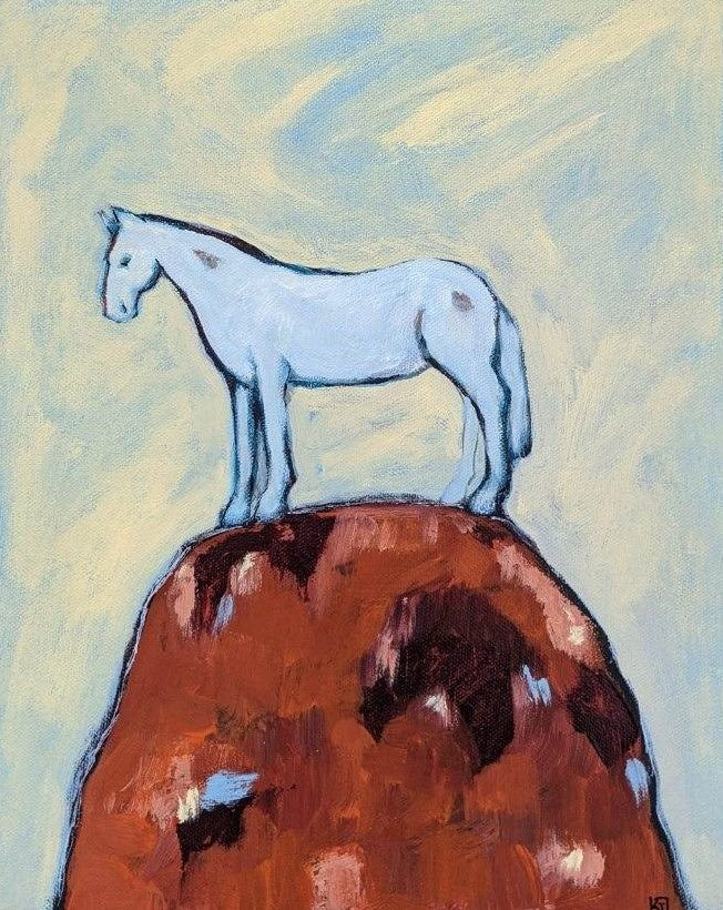 31 x 38.5cm. Acrylic on canvas in a white box frame