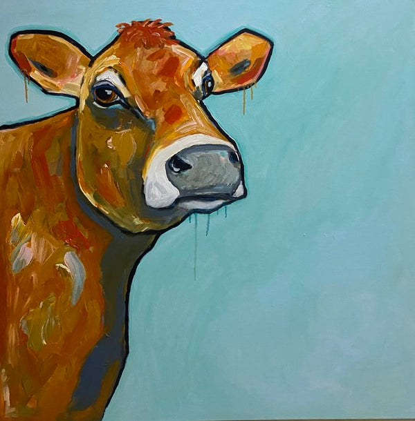84 x 84cm, acrylic on canvas, framed in white timber box.