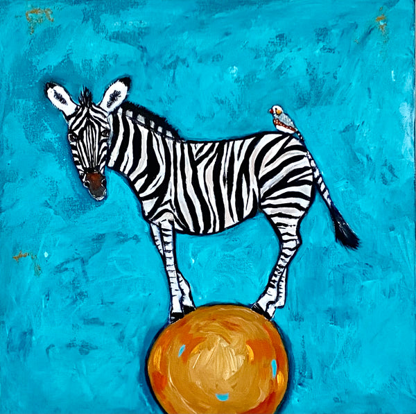 49 x 49cm. Acrylic on canvas in a white box frame