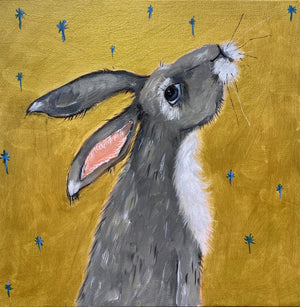 34 x 34cm. Acrylic on canvas in a gold float frame