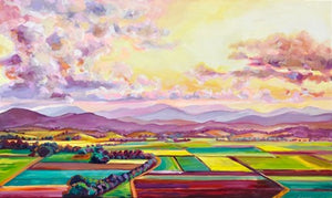 153cm x 93cm. Acrylic on canvas, framed in raw oak
