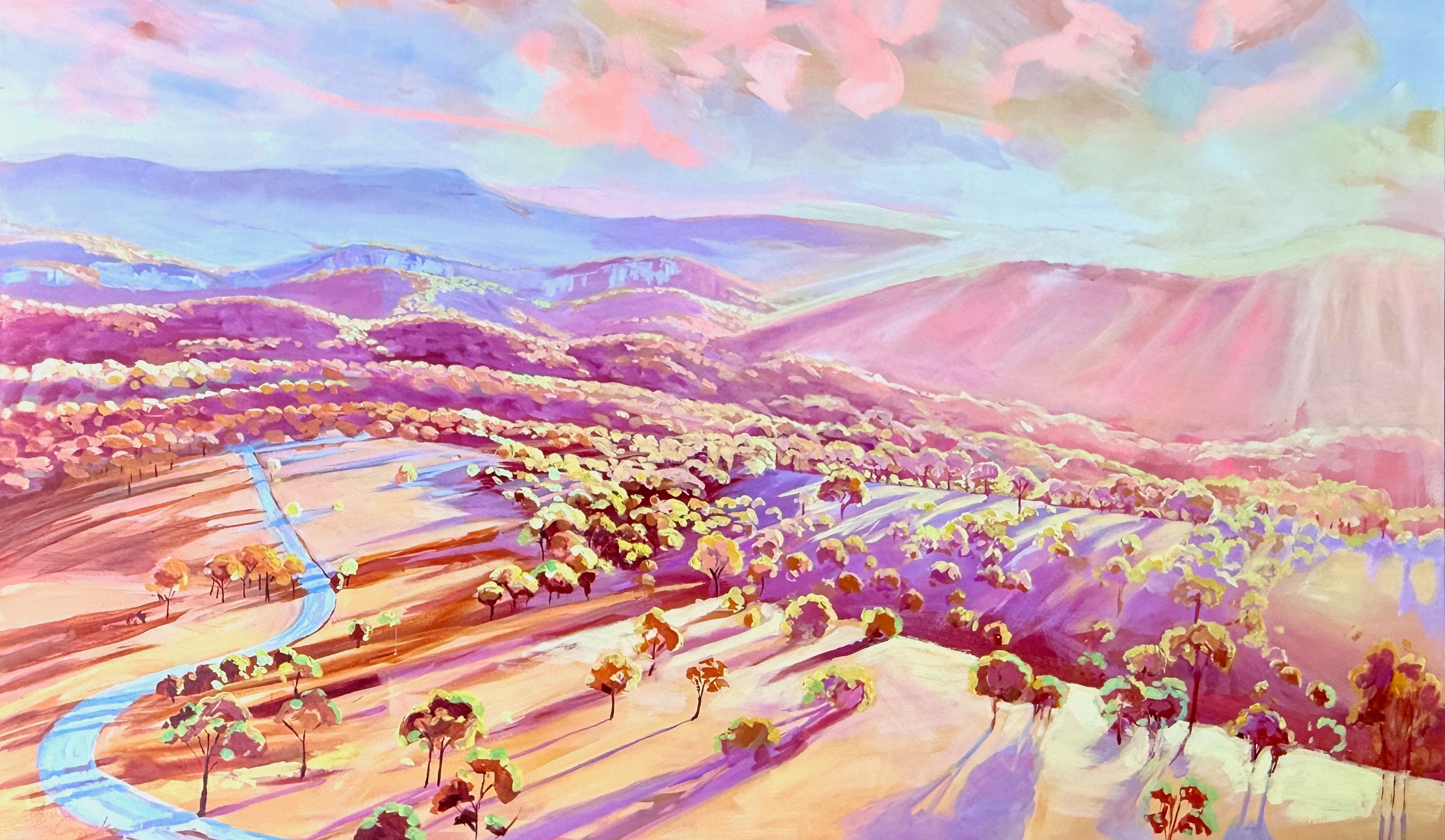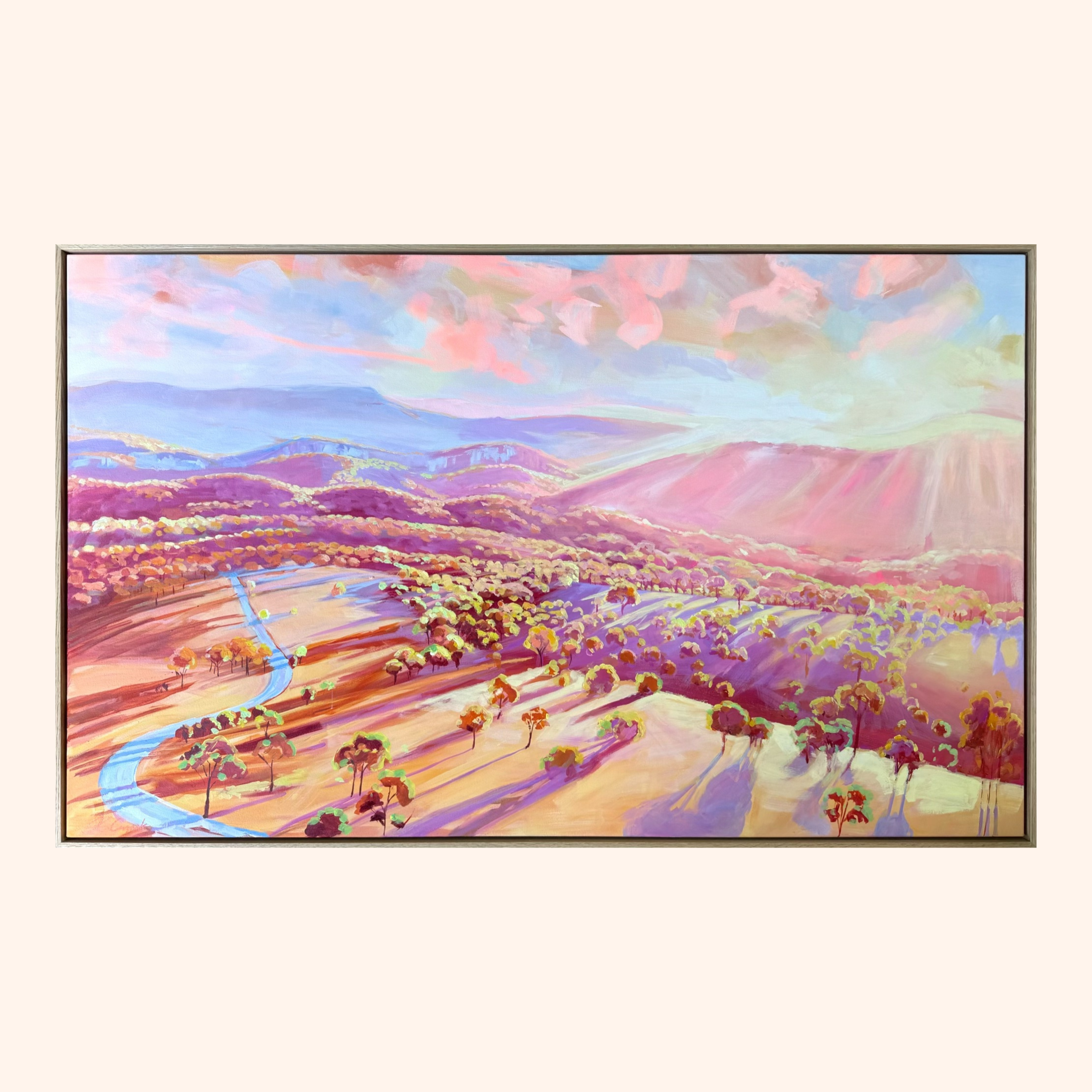 153 x 93cm. Acrylic on canvas, framed in Tasmanian Oak.