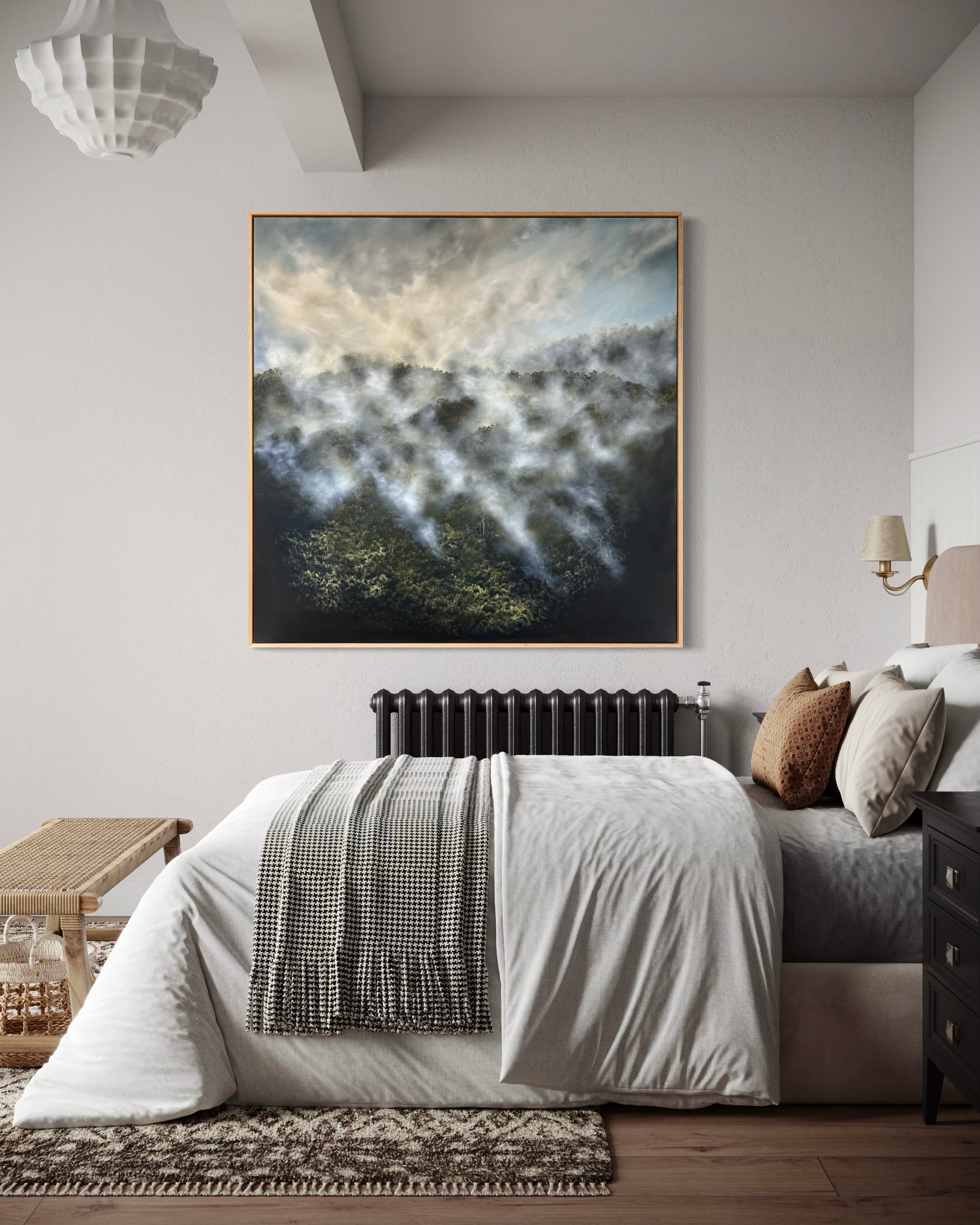 124 x 124cm. Oil on canvas, framed in raw oak.
