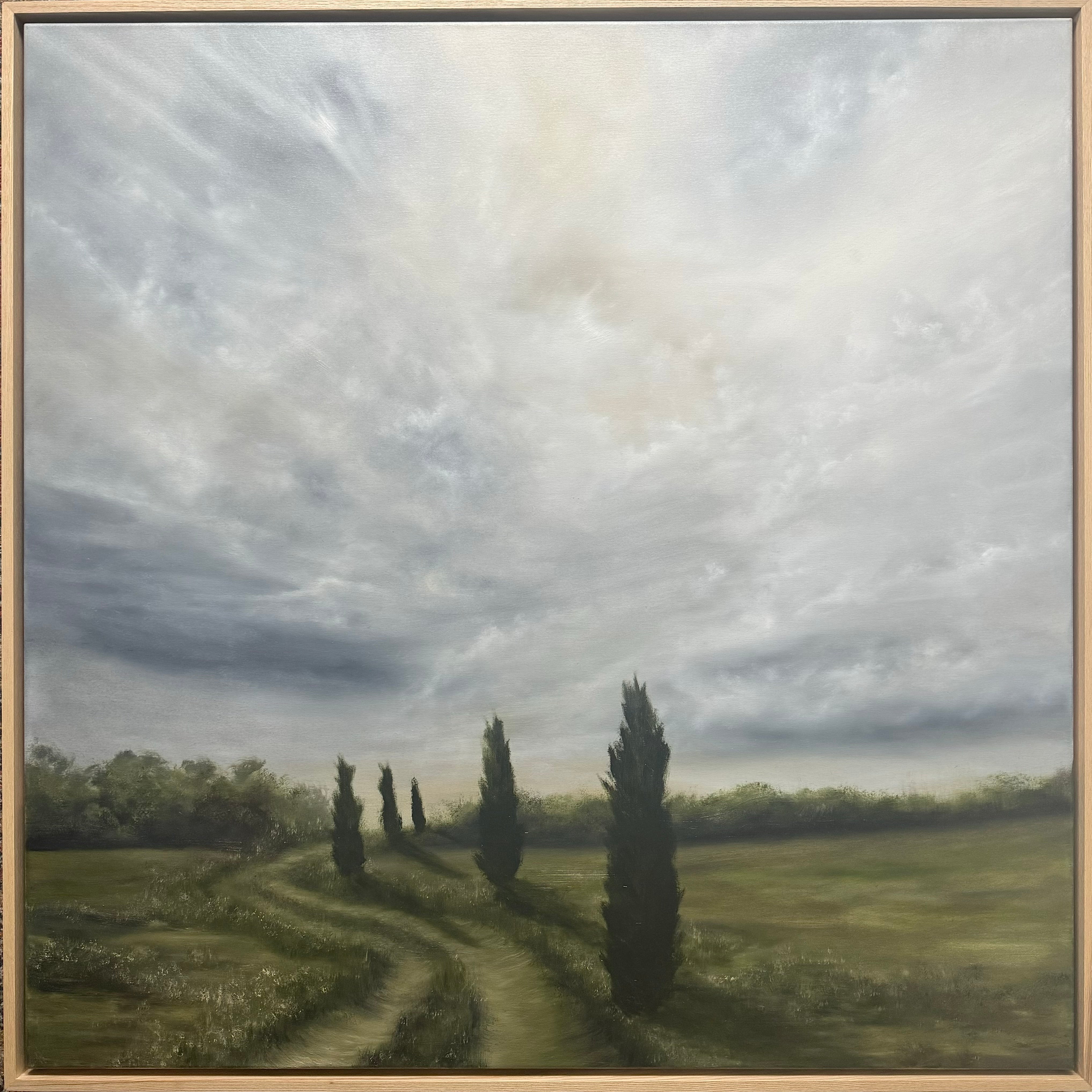 93 x 93cm. Oil on canvas, framed in Waxed Australian hardwood