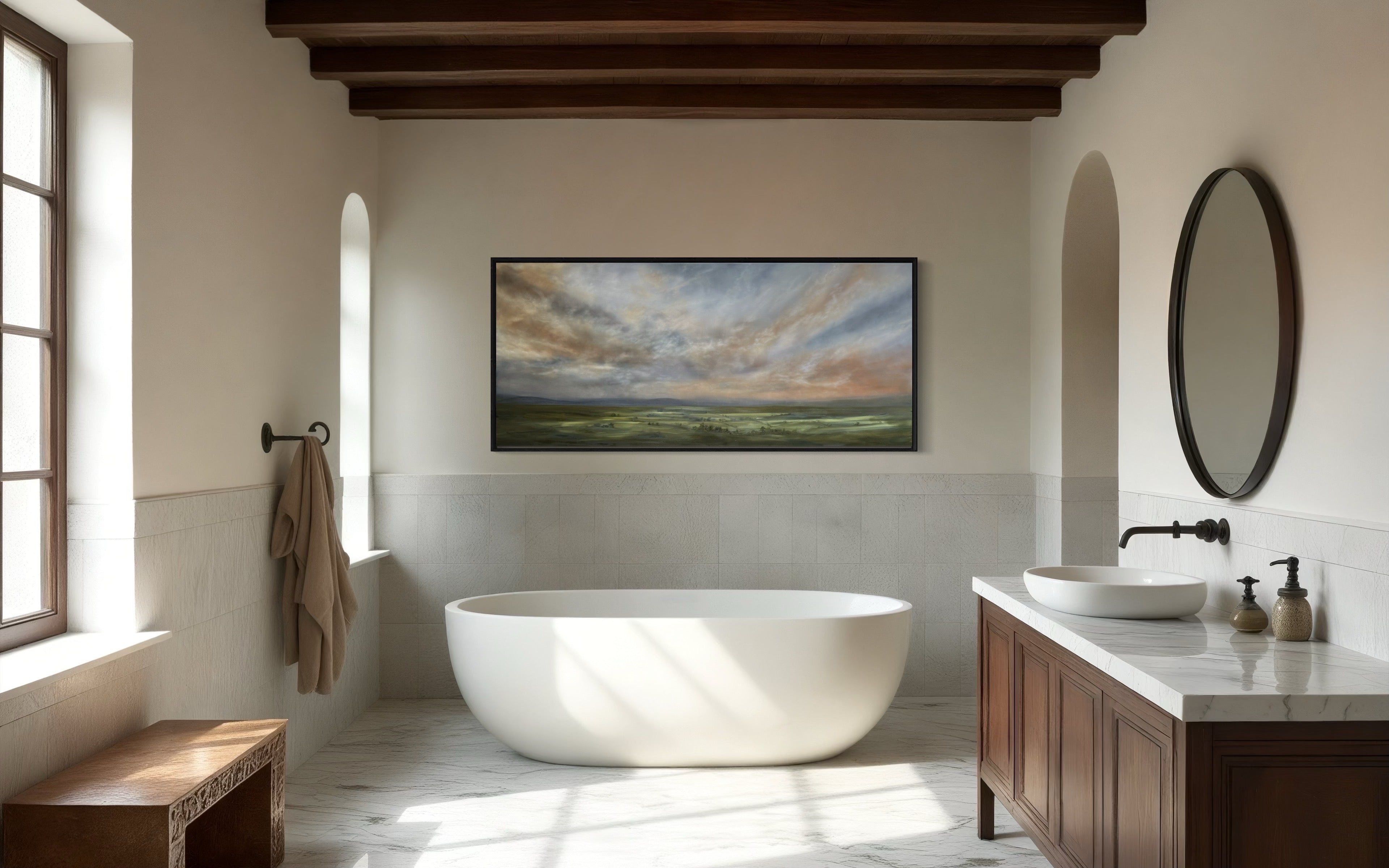 64 x 204cm. Oil on canvas, framed in raw oak.