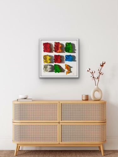 54.5 x 54.5cm. Oil on canvas, white frame