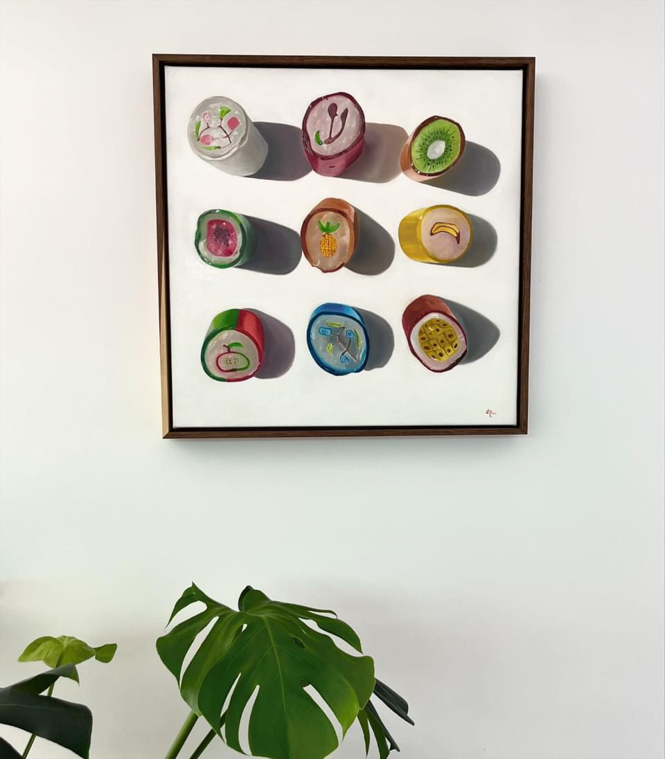 50 x 50cm. Oil on poly cotton canvas, framed in two tone timber frame.