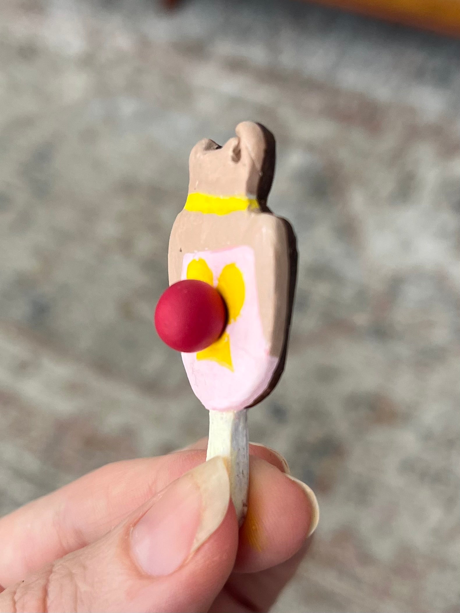 Leonie's 3D art collection is a series of mini artworks hand sculpted with polymer clay and each piece painted with oil paint to give it that realistic touch and added to the canvas so your art is literally looking good enough to reach out and eat! This little Bubble O Bill is beyond sweet!