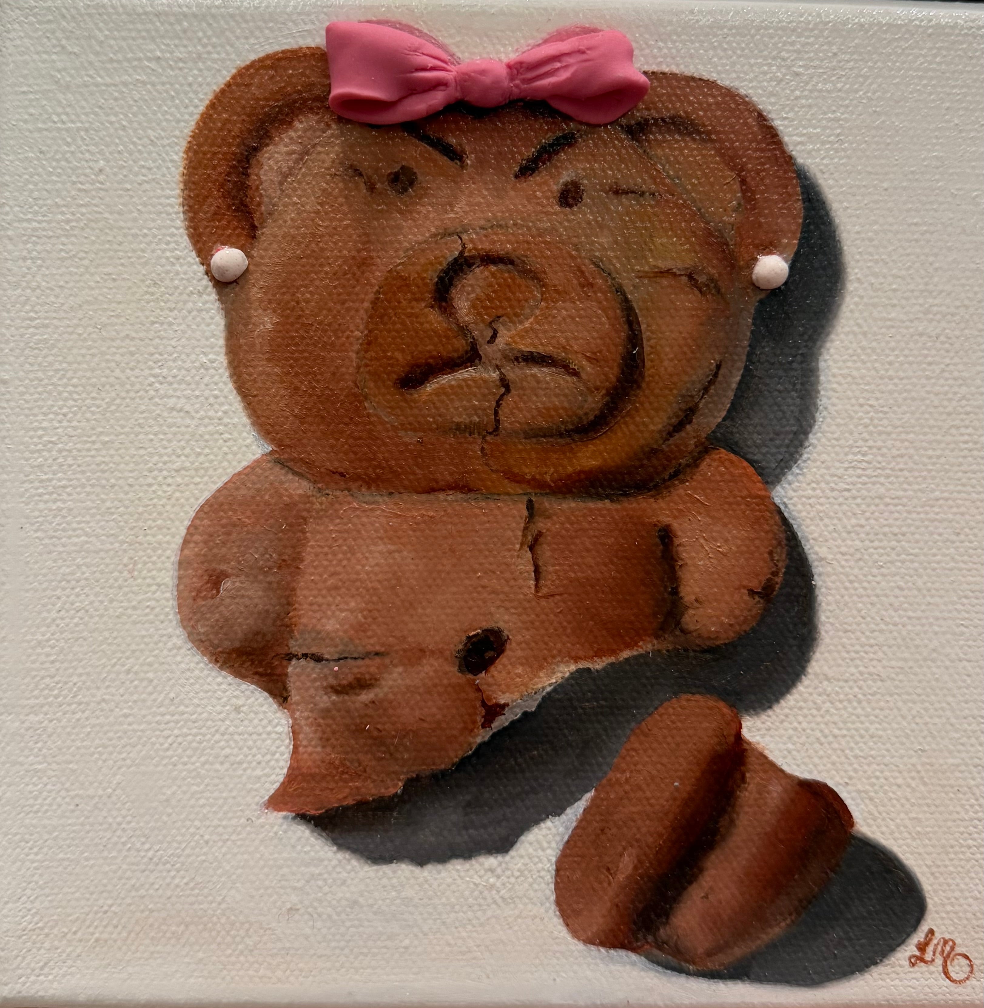 23 x 23cm. Oil & clay on canvas, framed in oak