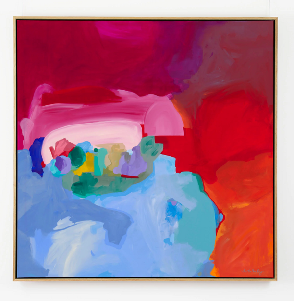 104 x 104cm. Acrylic on canvas (450gsm pure cotton), gamvar matte varnish, framed in Victorian Ash.