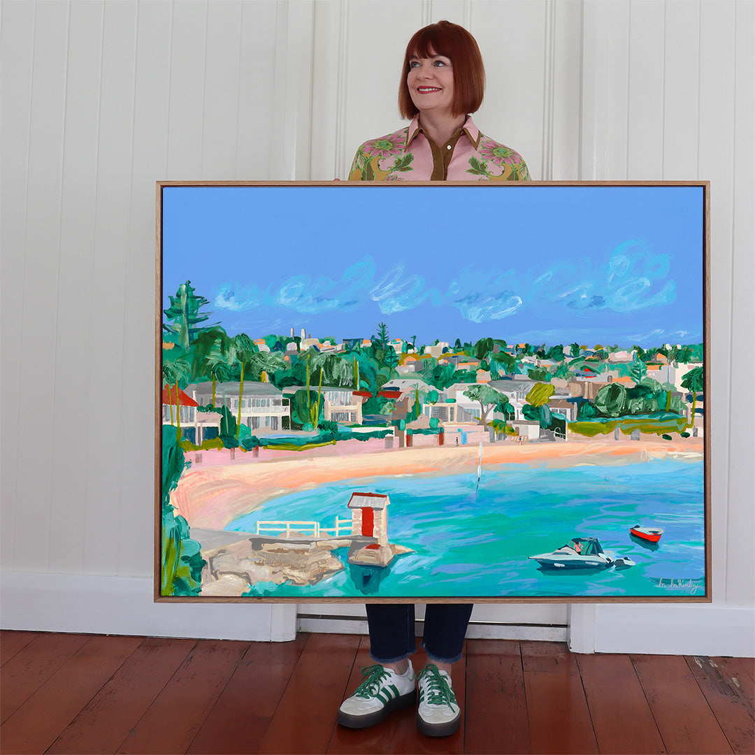 94 x 125cm. Acrylic & oil on canvas, gamvar matte varnish, framed in Flooded Gum.
