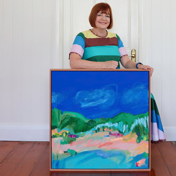 79 x 79cm. Acrylic & oil on canvas (12oz poly cotton), gamvar matte varnish, framed in Flooded Gum.
