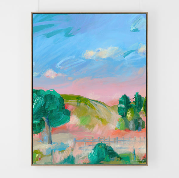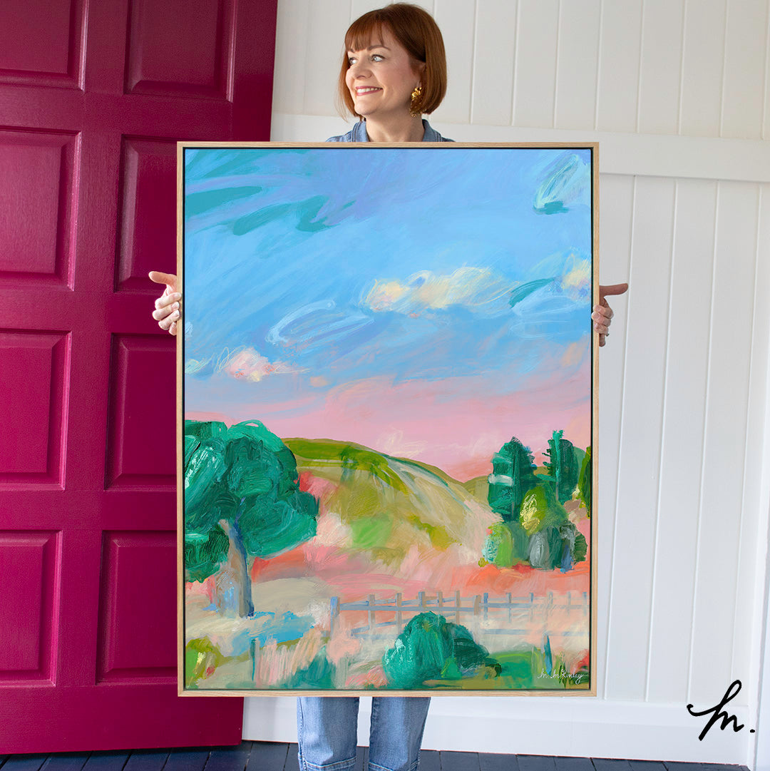 109 x 79cm. Acrylic & oil on canvas (12oz poly cotton), gamvar matte varnish, framed in Flooded Gum.