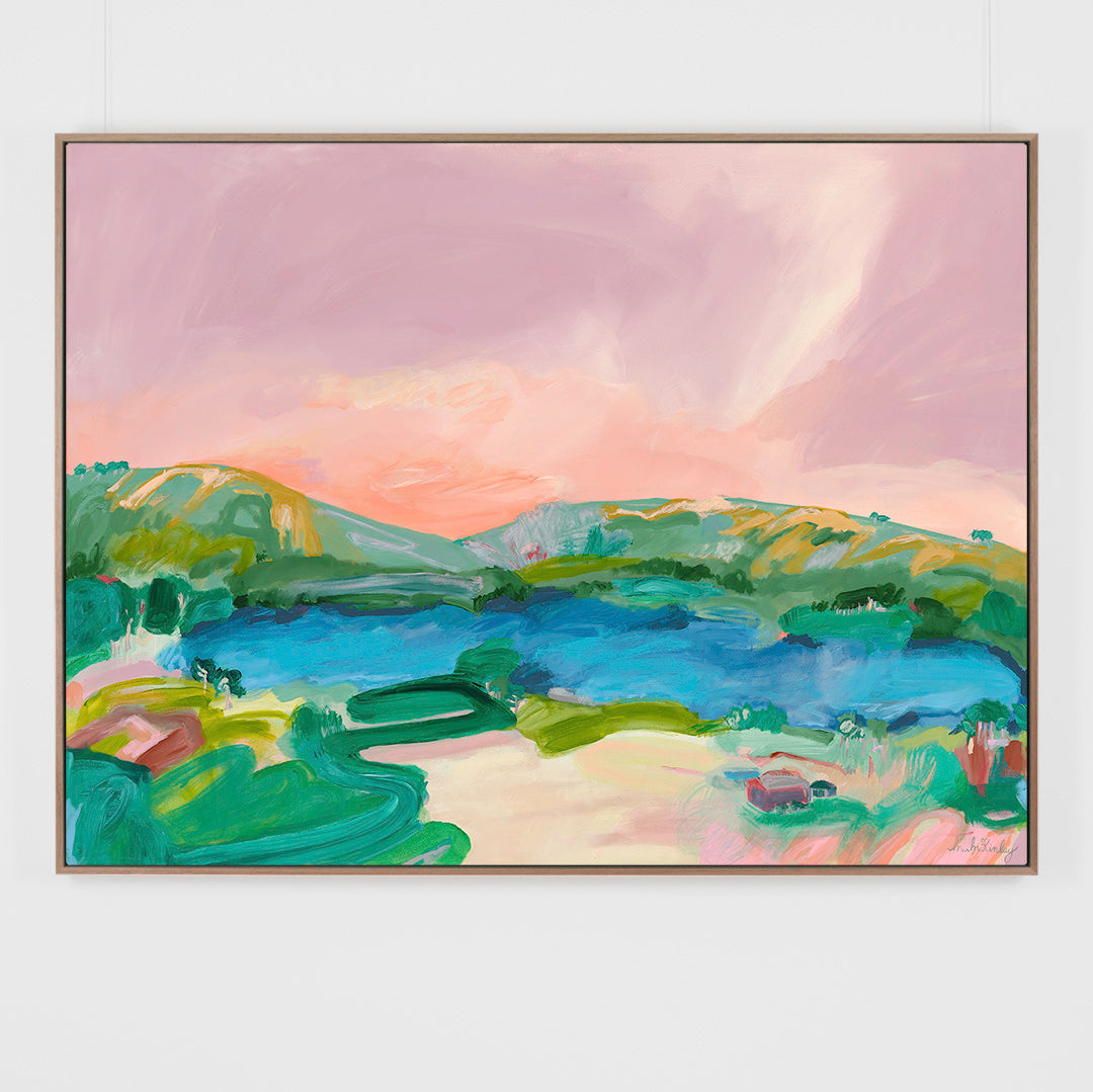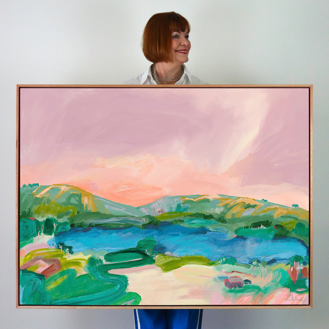93 x 123cm. Acrylic & oil on canvas (12oz poly cotton). Gamvar matte varnish. Framed in Flooded Gum