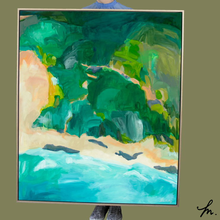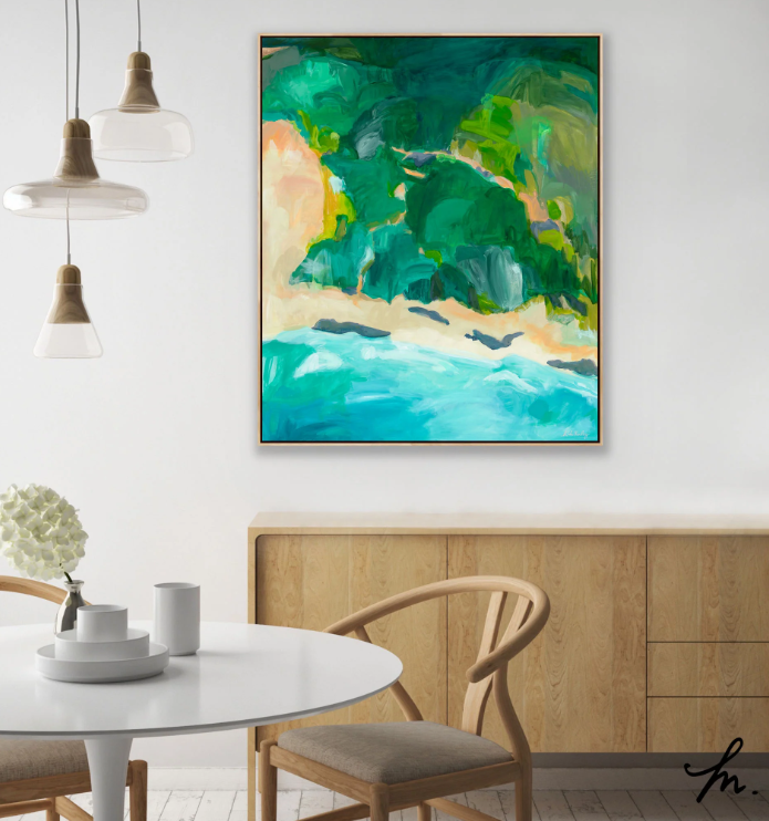 125 x 105cm. Acrylic on canvas (12oz ultra smooth poly cotton), gamvar matte varnish, framed in Raw Oak