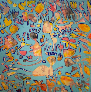 80 x 80 cm Acrylic paint and ink wash on canvas framed in sustainable oak timber.