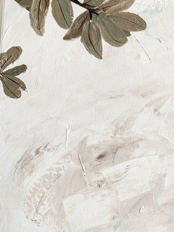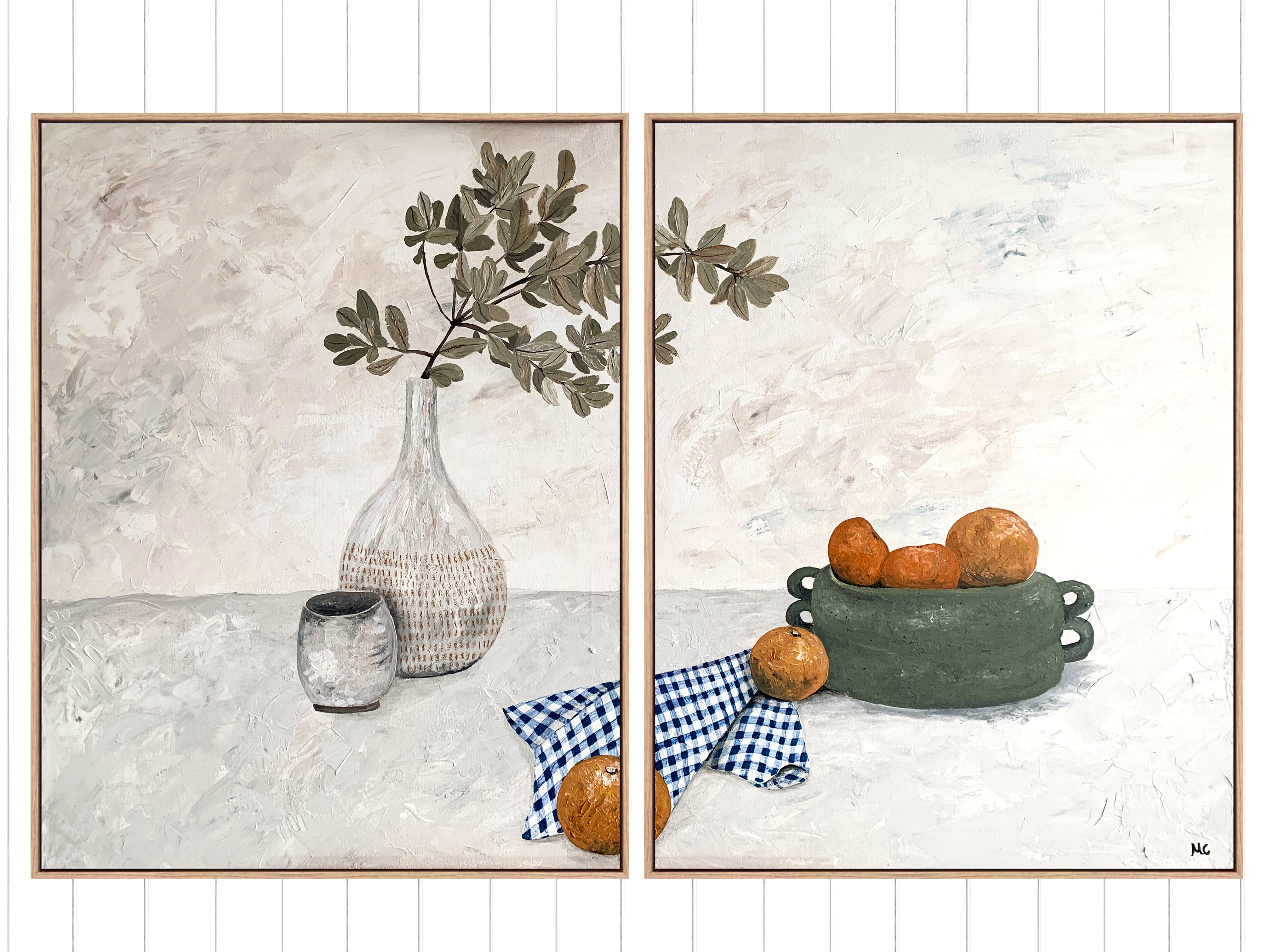 Each piece is 78 x 63cm. Acrylic with mixed media on canvas, framed in Australian oak