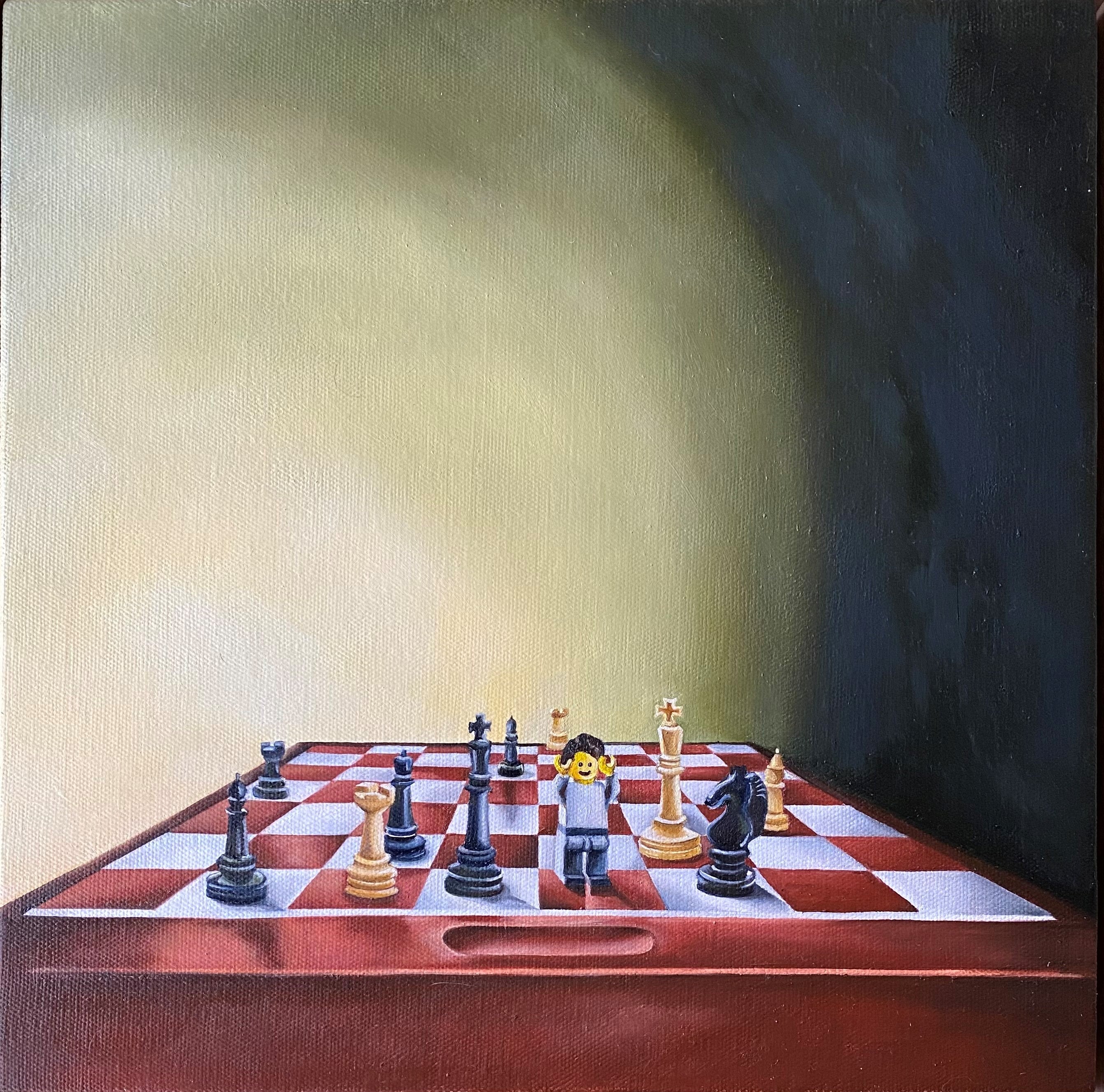 30 x 30cm. Oil on canvas, framed in timber float frame