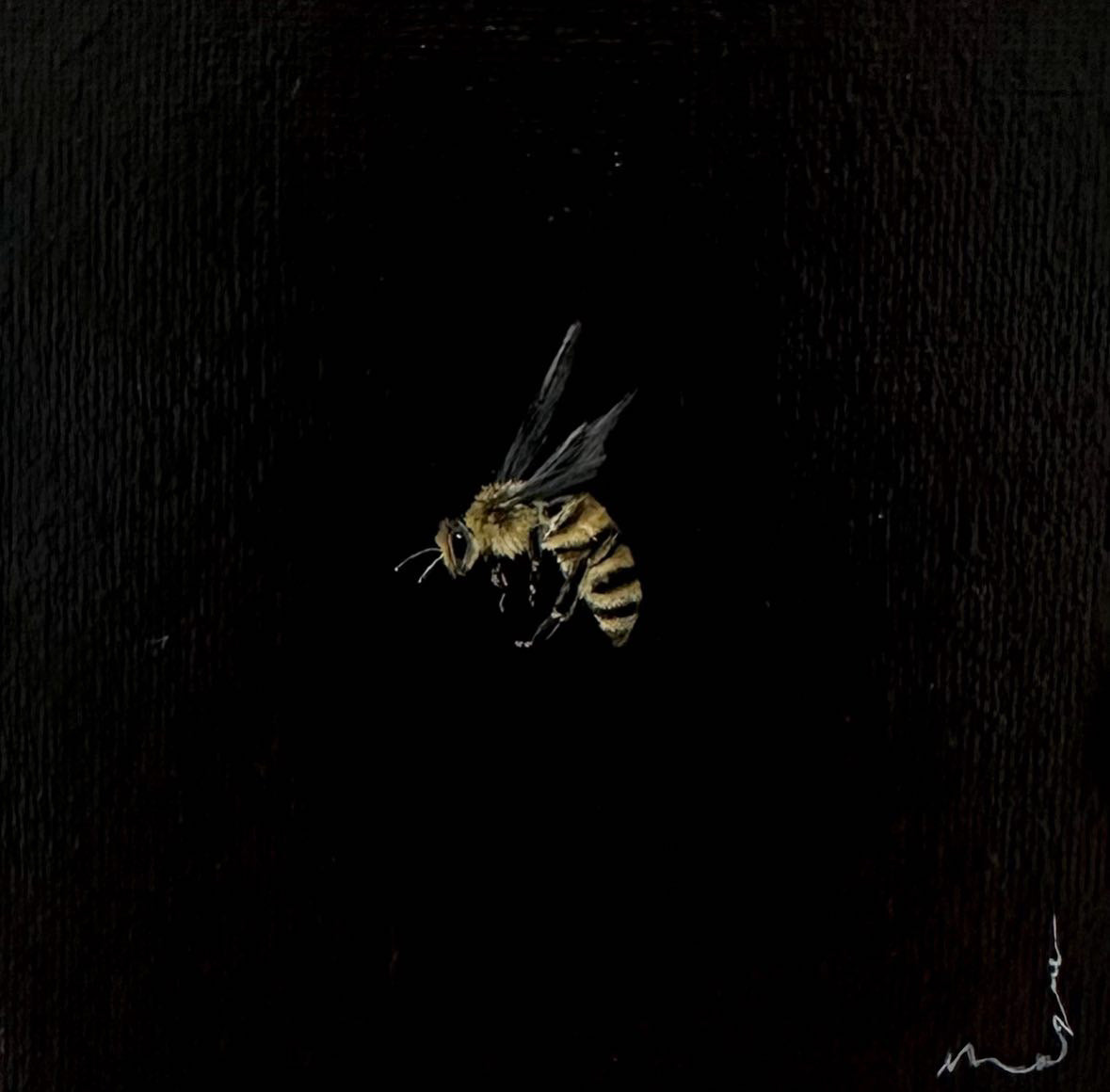 18 x 18cm, Acrylic and oil on canvas board, framed in ornate black frame with gold trimming.