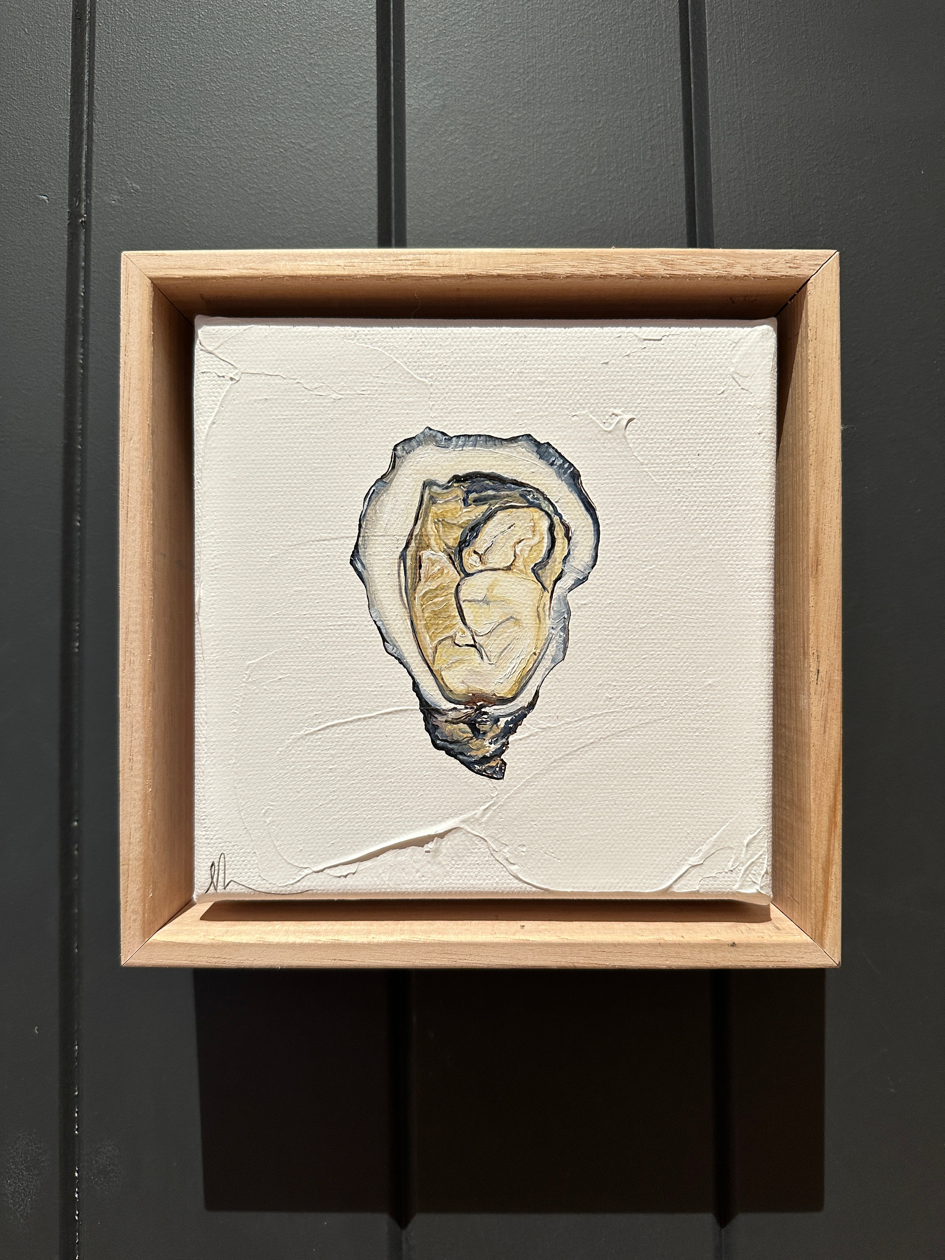 19 x 19cm. Acrylic on canvas, framed in timber oak frame.