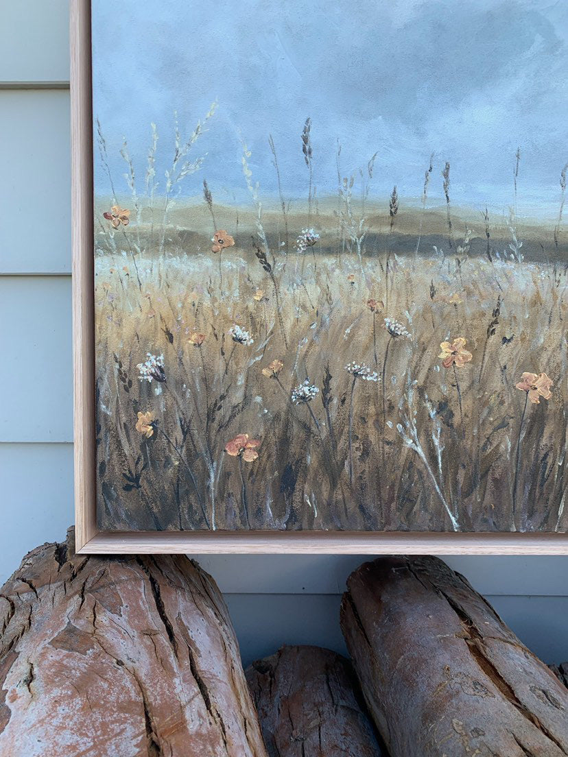 79.5 x 53.5cm. Acrylic on primed raw canvas, framed in deep edge Australian oak.