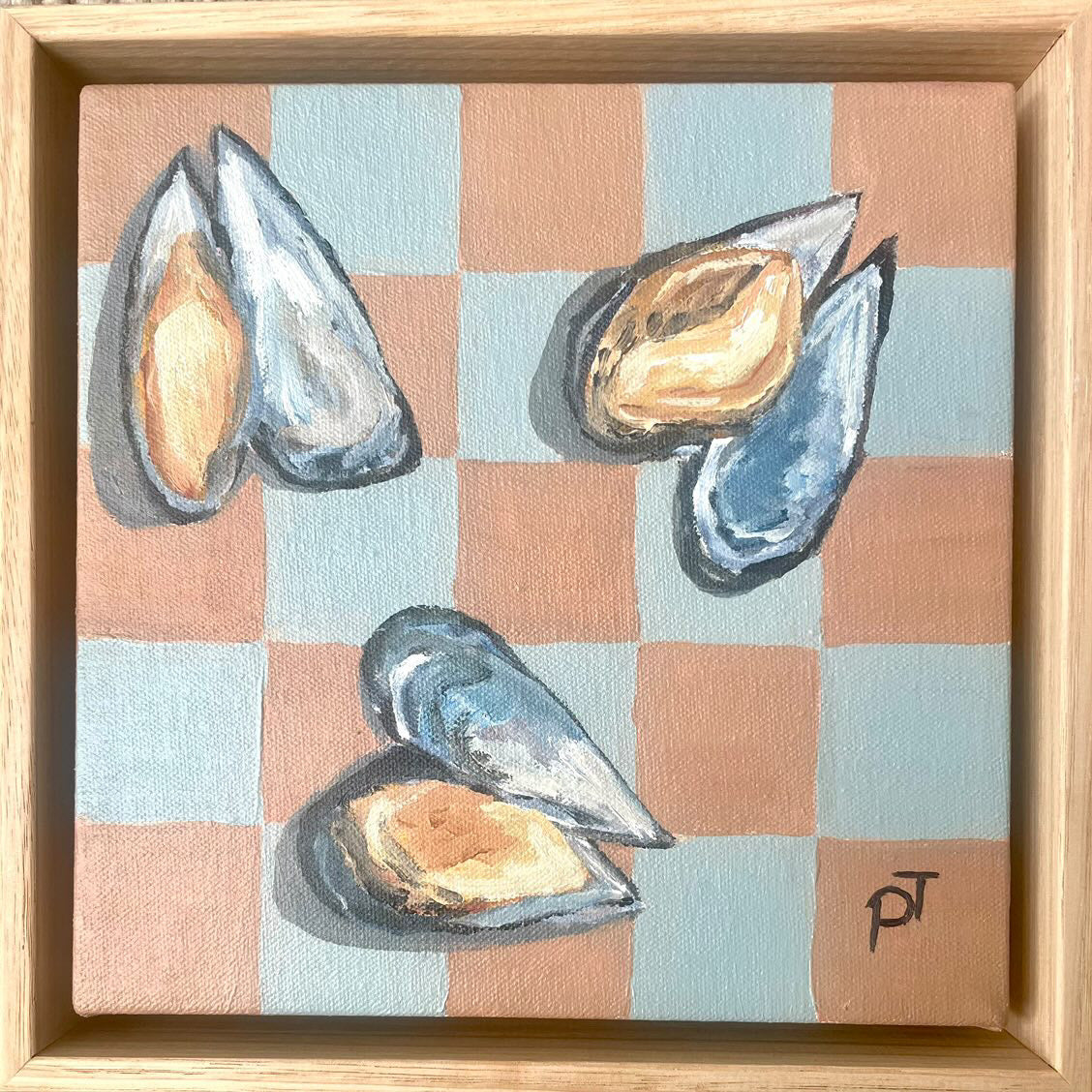 23 x 23cm. Acrylic on canvas, framed in Tasmanian oak