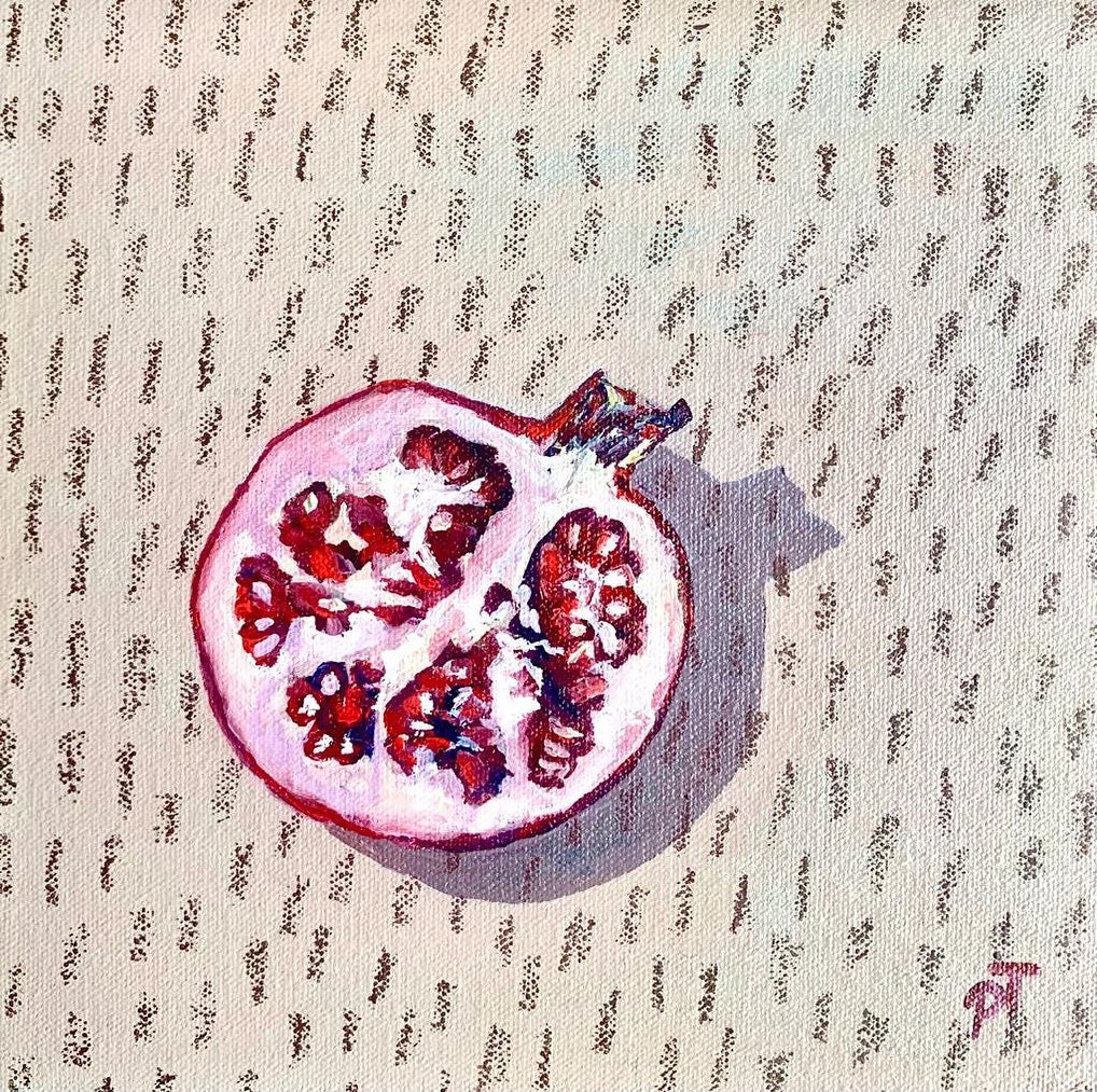 23 x 23cm. Mixed media on canvas, framed in Tasmanian oak