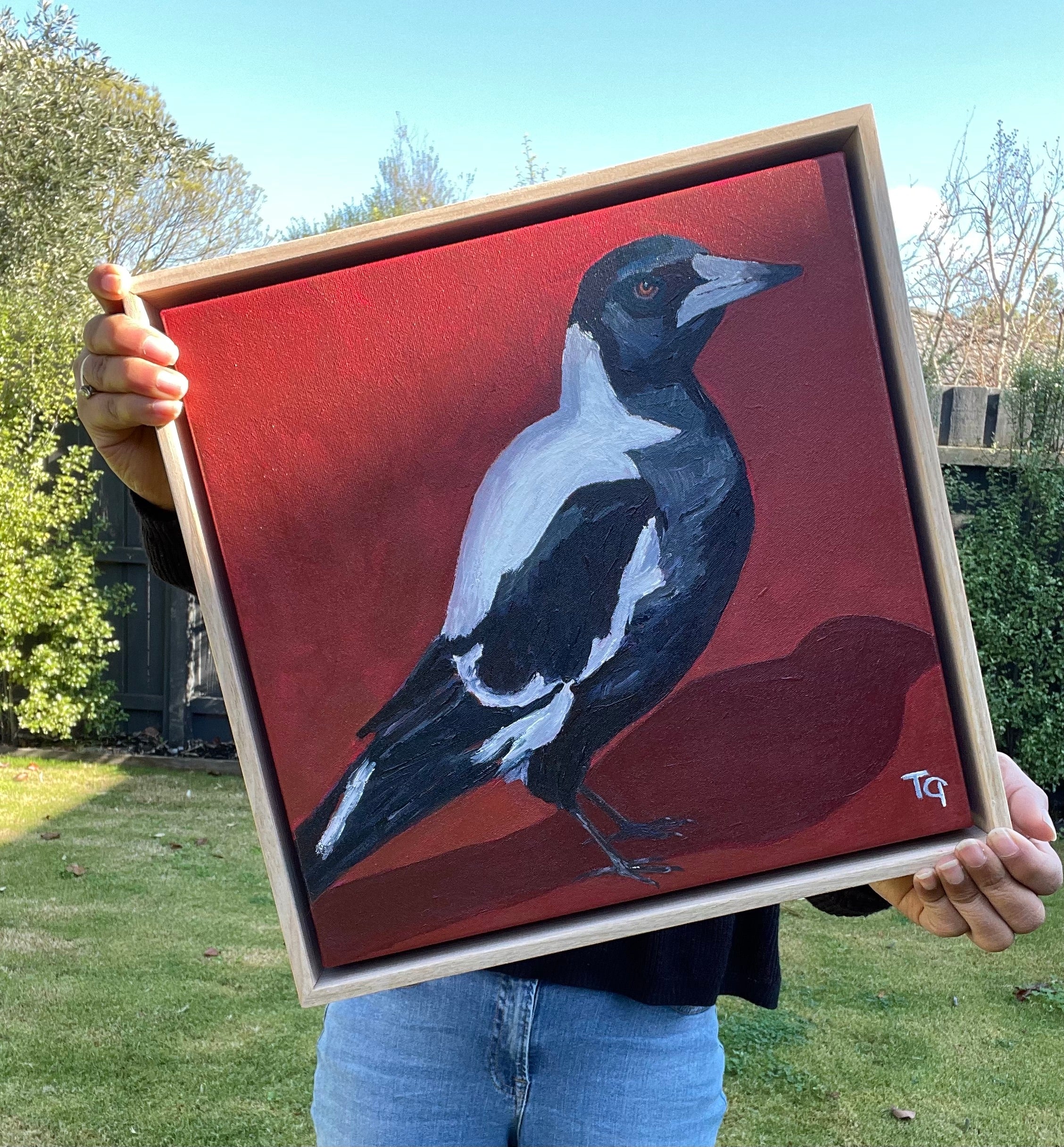 33 x 33cm. Acrylic on canvas , framed in Tasmanian oak