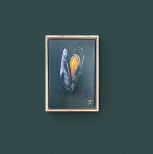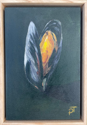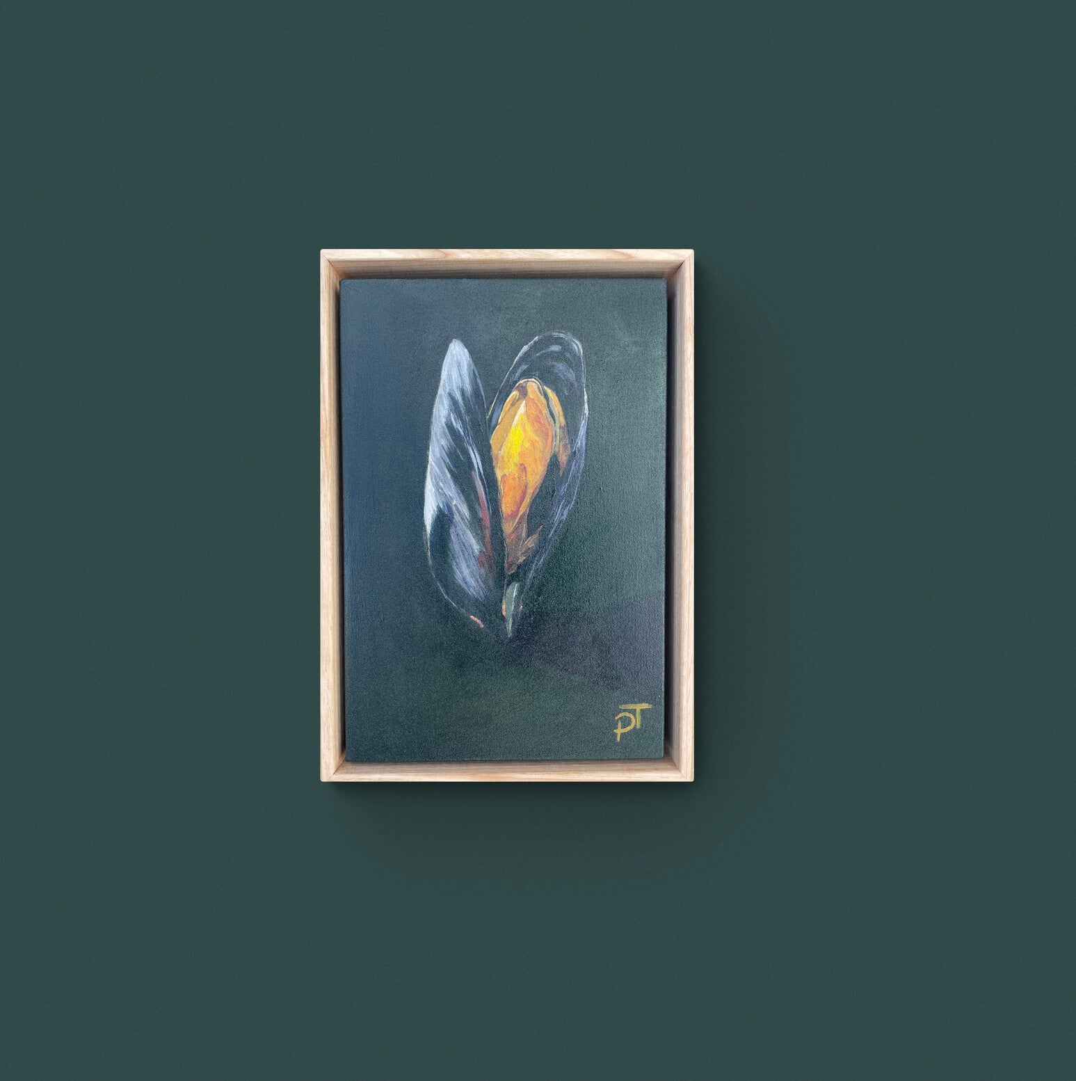 23 x 33cm. Acrylic on wooden board, framed in Tasmanian oak