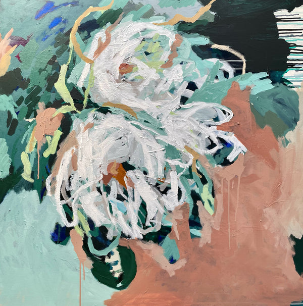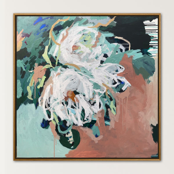 91 x 91cm. Acrylic on canvas, framed in Tasmanian oak