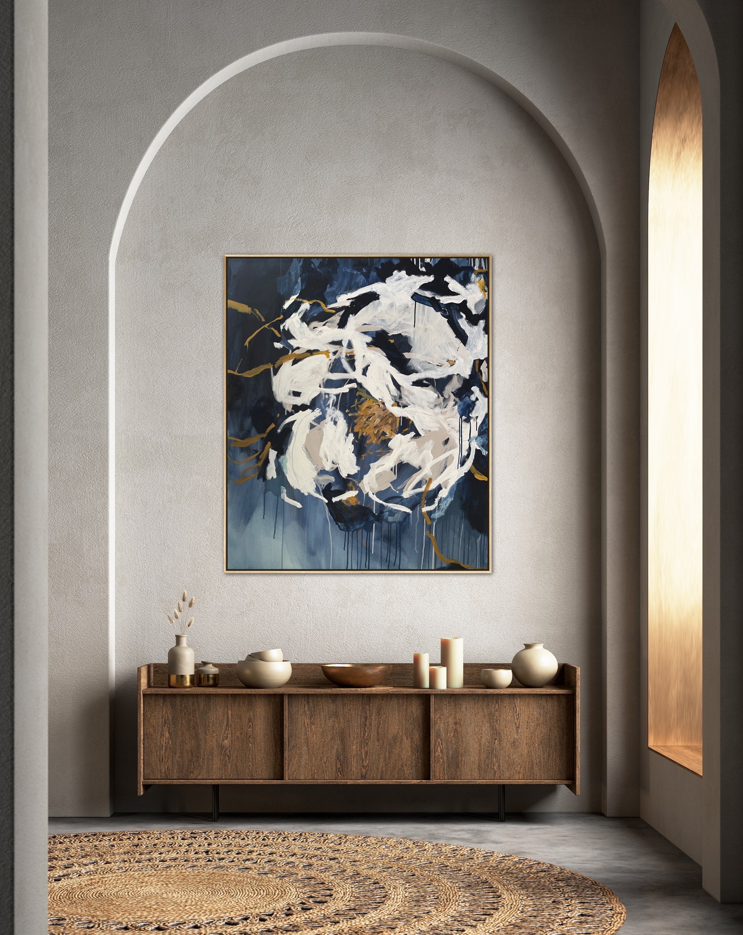 100 x 120cm. Acrylic on canvas, framed in American ash
