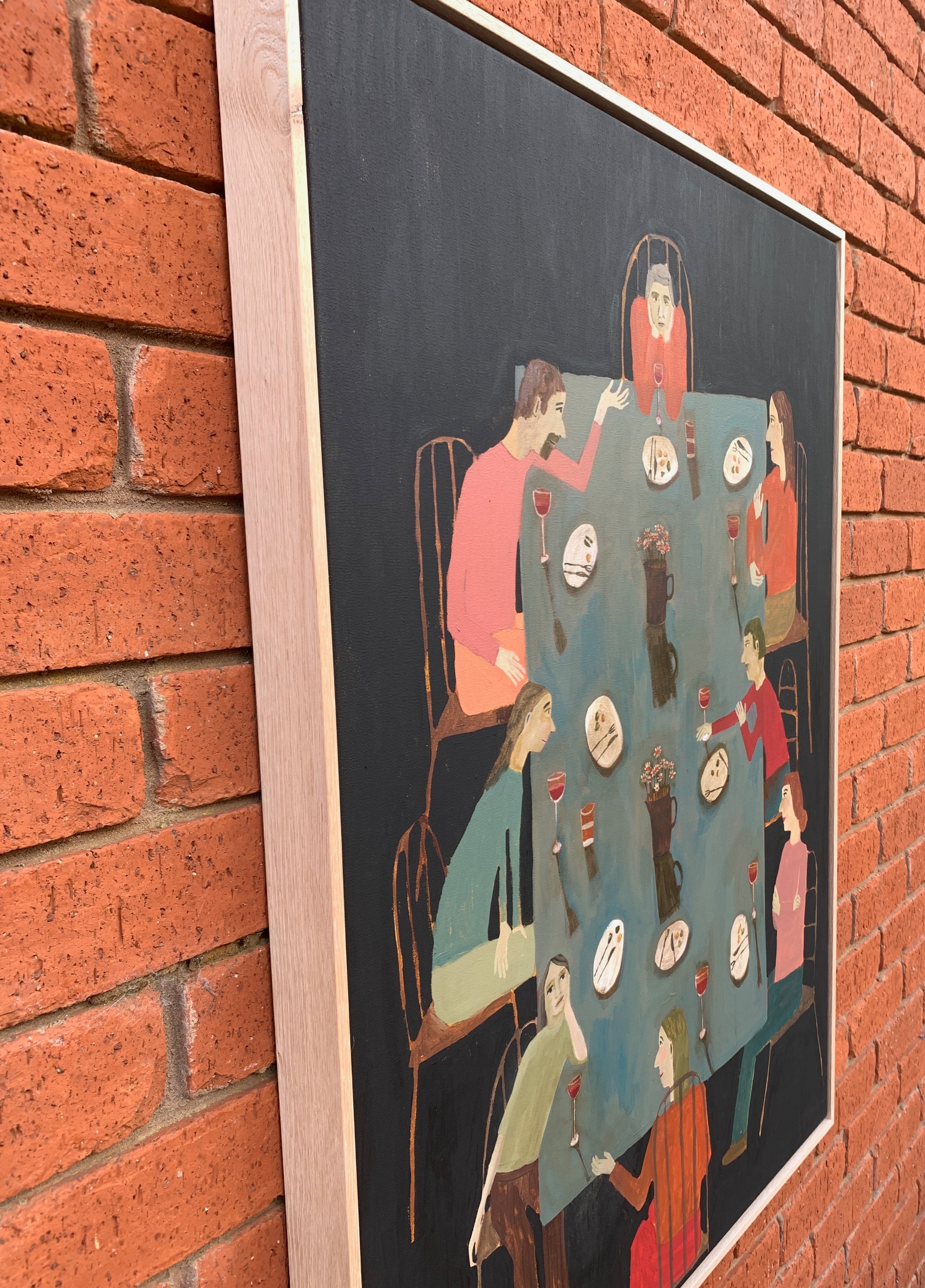 This painting is part of a series of paintings set at parties and other social events. These works make us wonder about the relationships between the subjects. Are they friends? Family? Colleagues? Are they having a good time? Or are we glimpsing brief moments of tension, fatigue or boredom? Through observing the subjects of these works we're encouraged to feel a sense of recognition, perhaps even a hint of nostalgia, for the social occasions that have shaped our own lives.