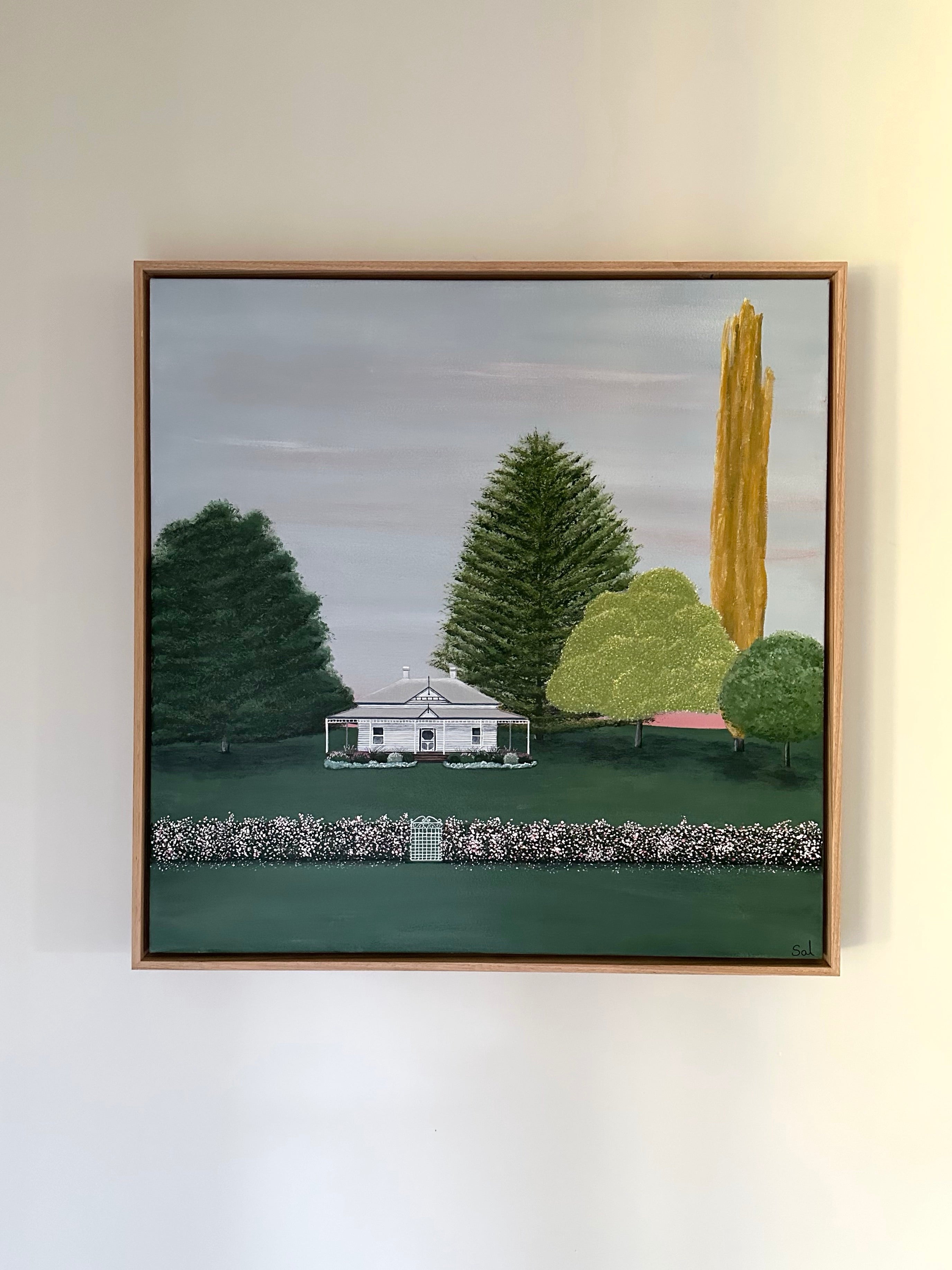 With a horticultural background, Sally has a true love of nature. Her paintings are brought to life using textured delicate colours with a hint of feminine and fun. Each painting is a small world of its own, where colour and curiosity meets quirky. Animals, cottages and storybook rolling hills invite viewers to pause and smile, to remember the magic in the ordinary. Inspired by childhood memories and a deep love of homegrown beauty and nature, offering a sense of warmth, wonder and quiet joy.