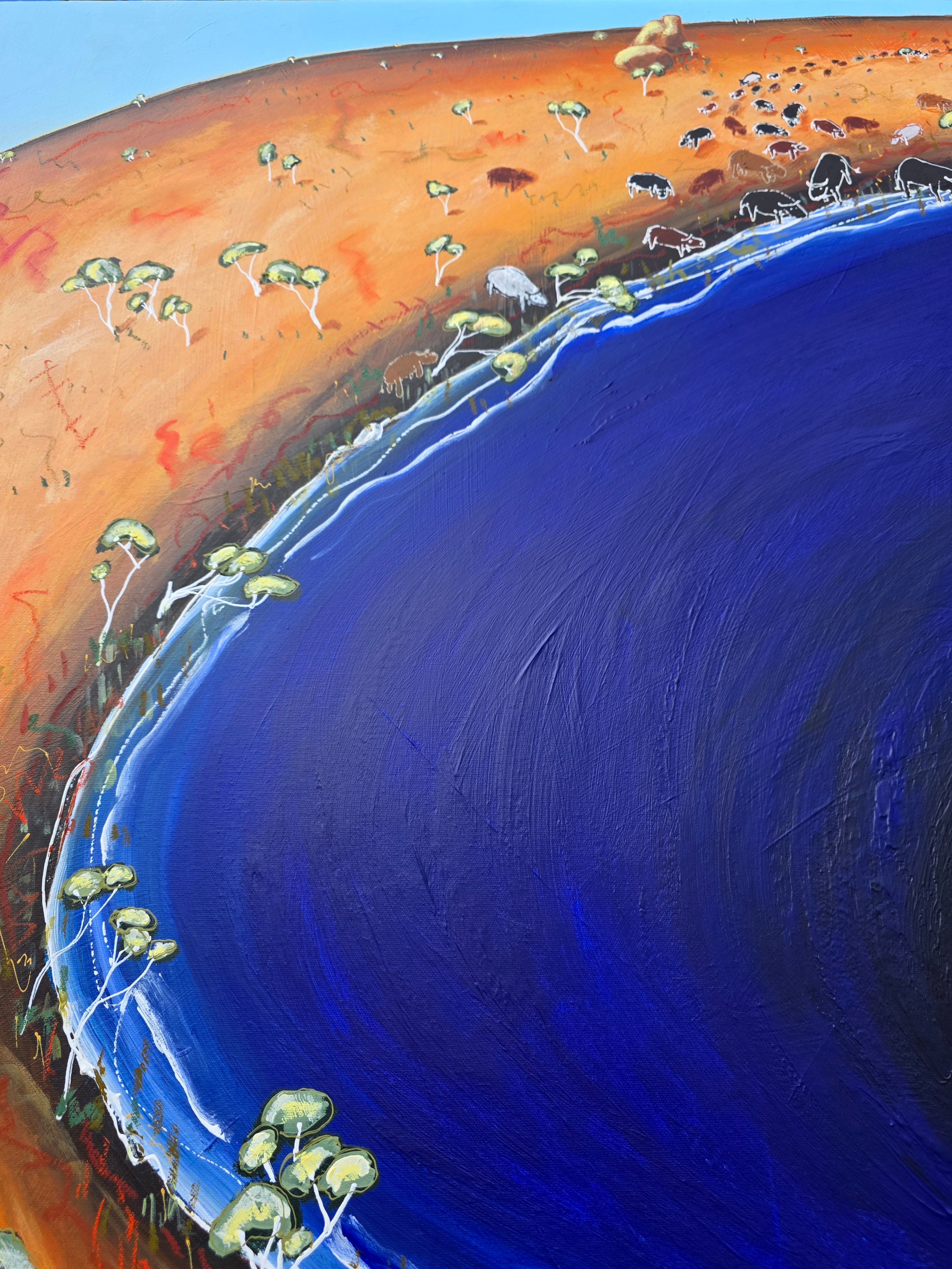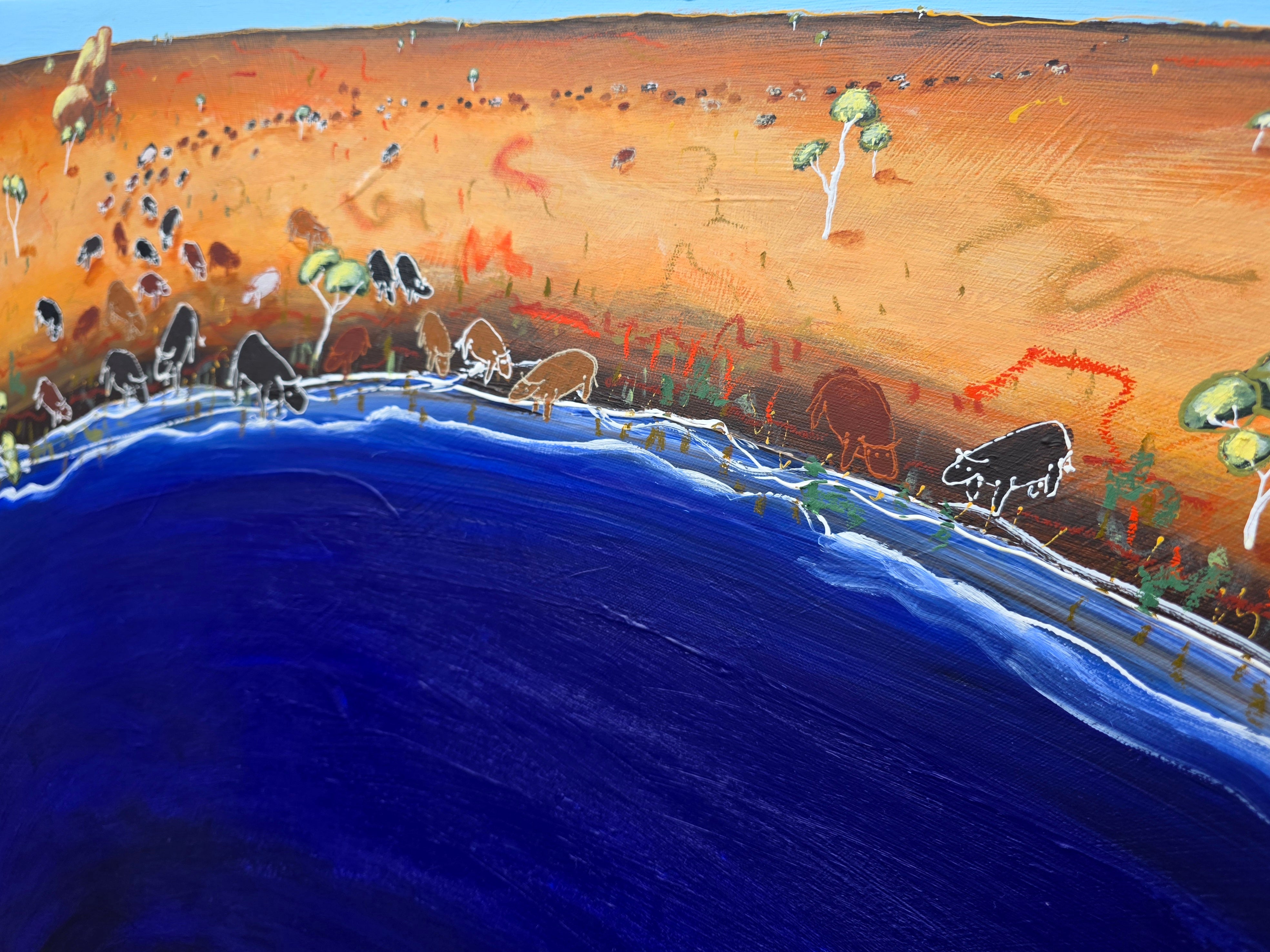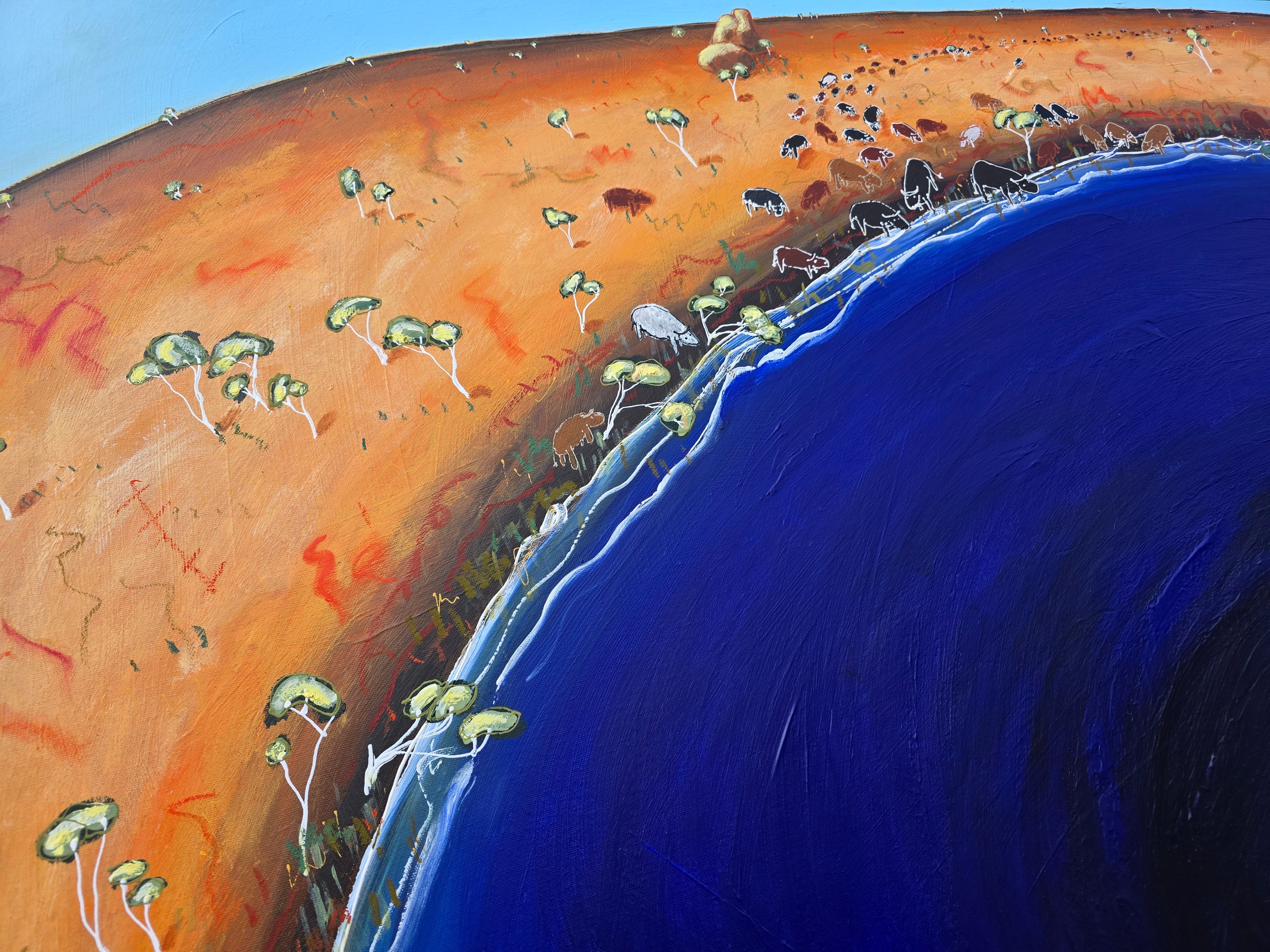 This is based on a story I overheard someone talking about, the way he described the herd walking for miles across the farm and charging towards the dam, it sounded like almost like a biblical tale, a great pilgrimage to the promised land...except it was cows.